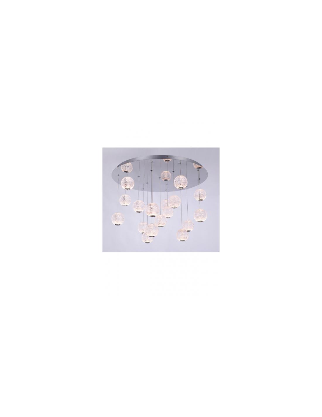 Suspension with 17 lights with acrylic and diamond-shaped diffuser, chromed version.