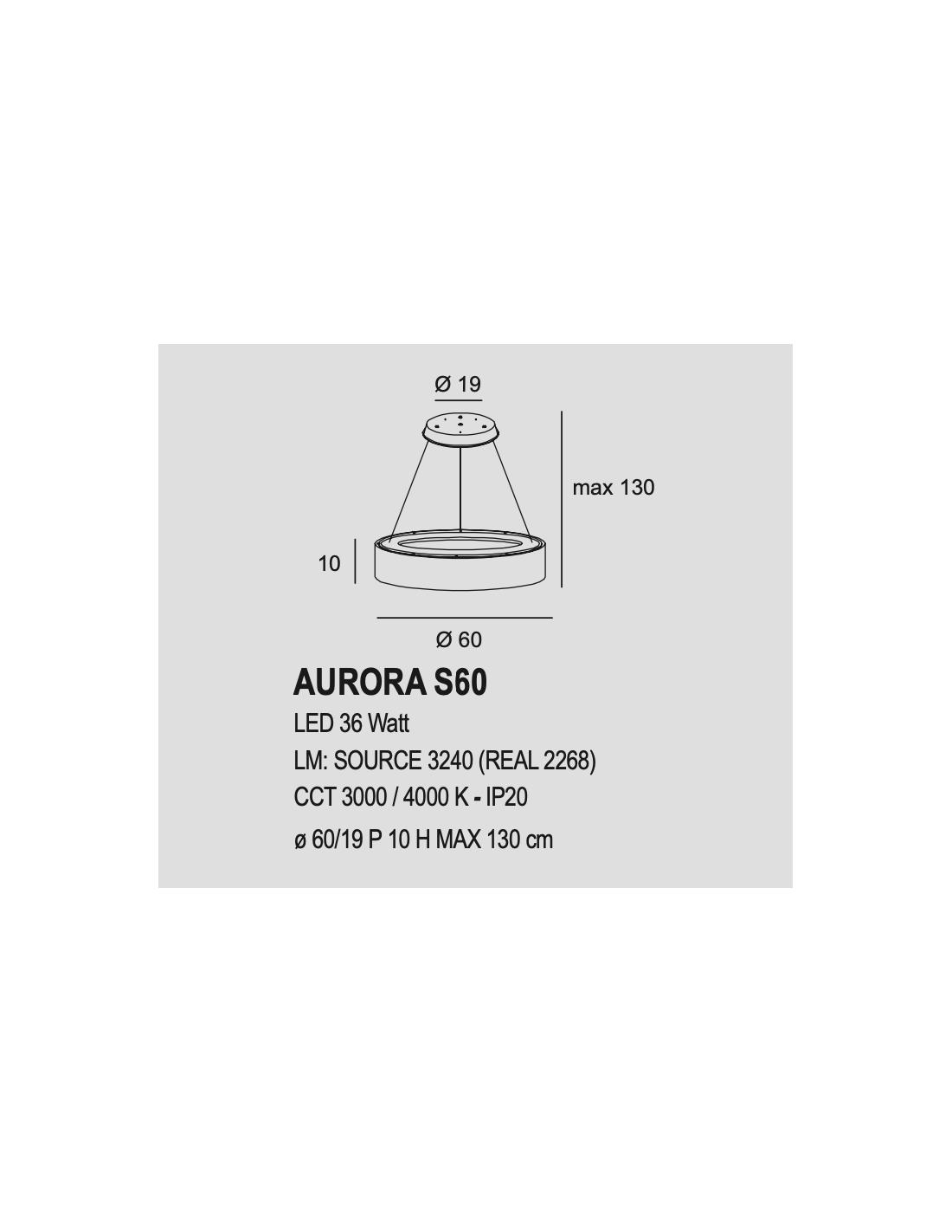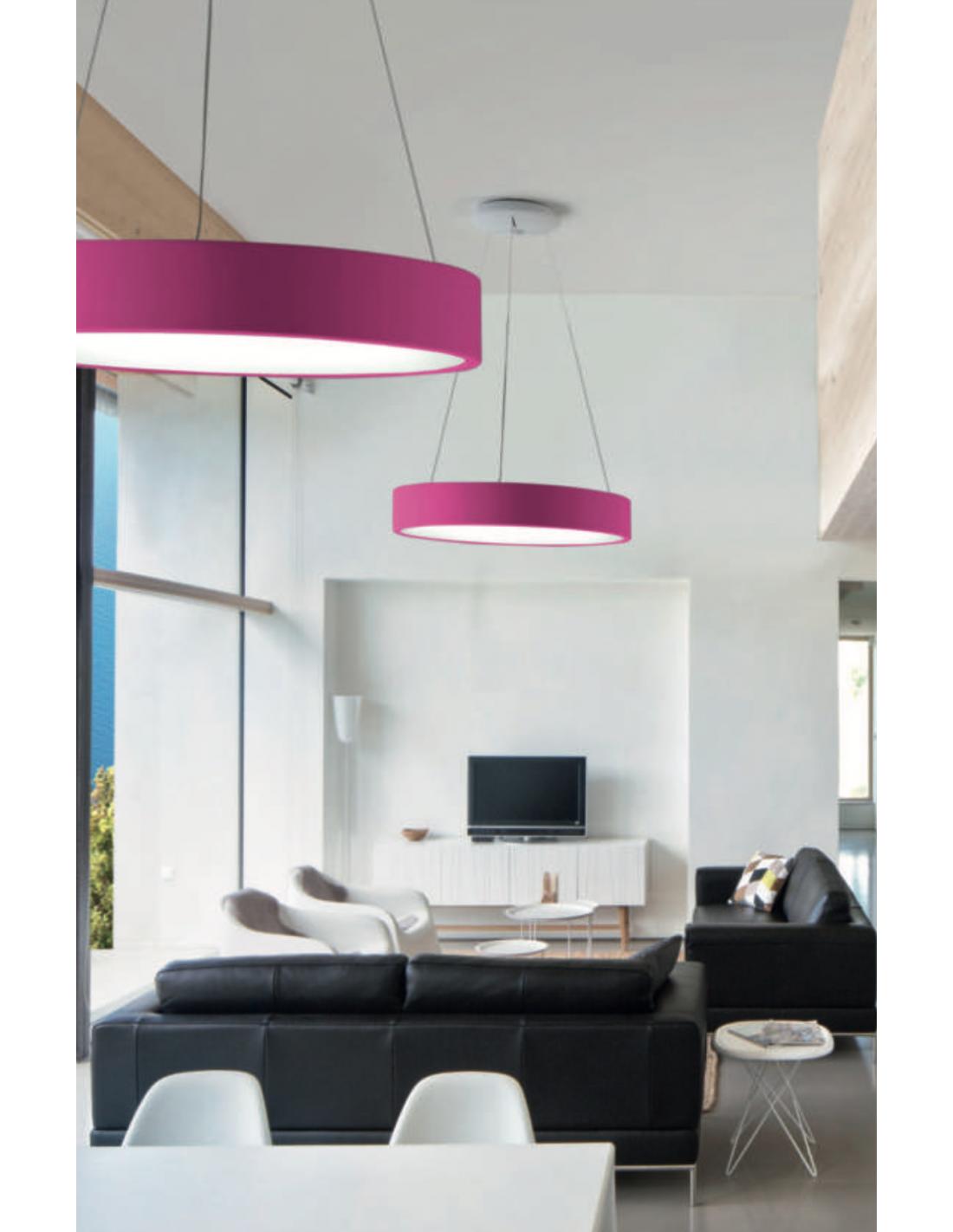 Suspension lamp for interiors with ring in painted metal, integrated LED white methacrylate diffuser. Switch between 3000-4000K, dimmable on request.