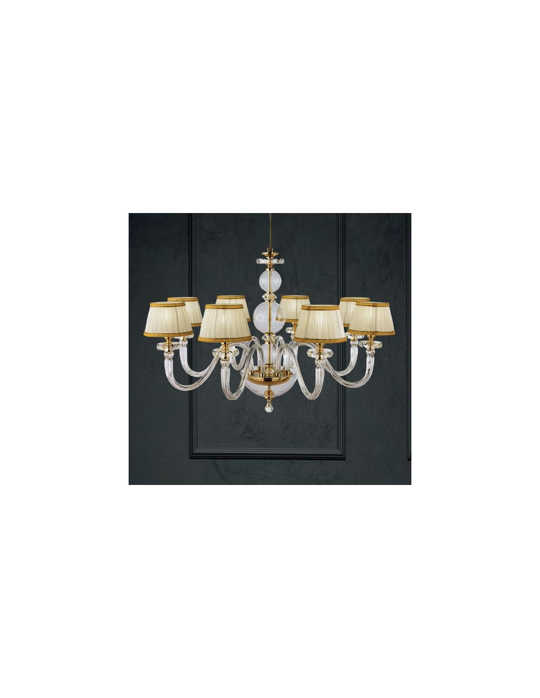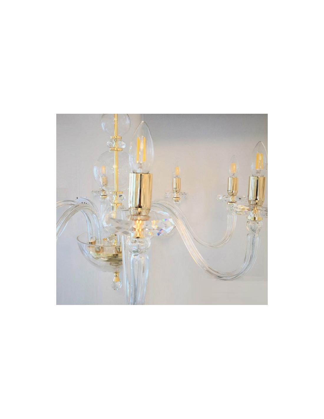 Hand-blown glass chandelier with details and gold finish. Perfect for the interior, a harmonious blend of classic and modern styles.