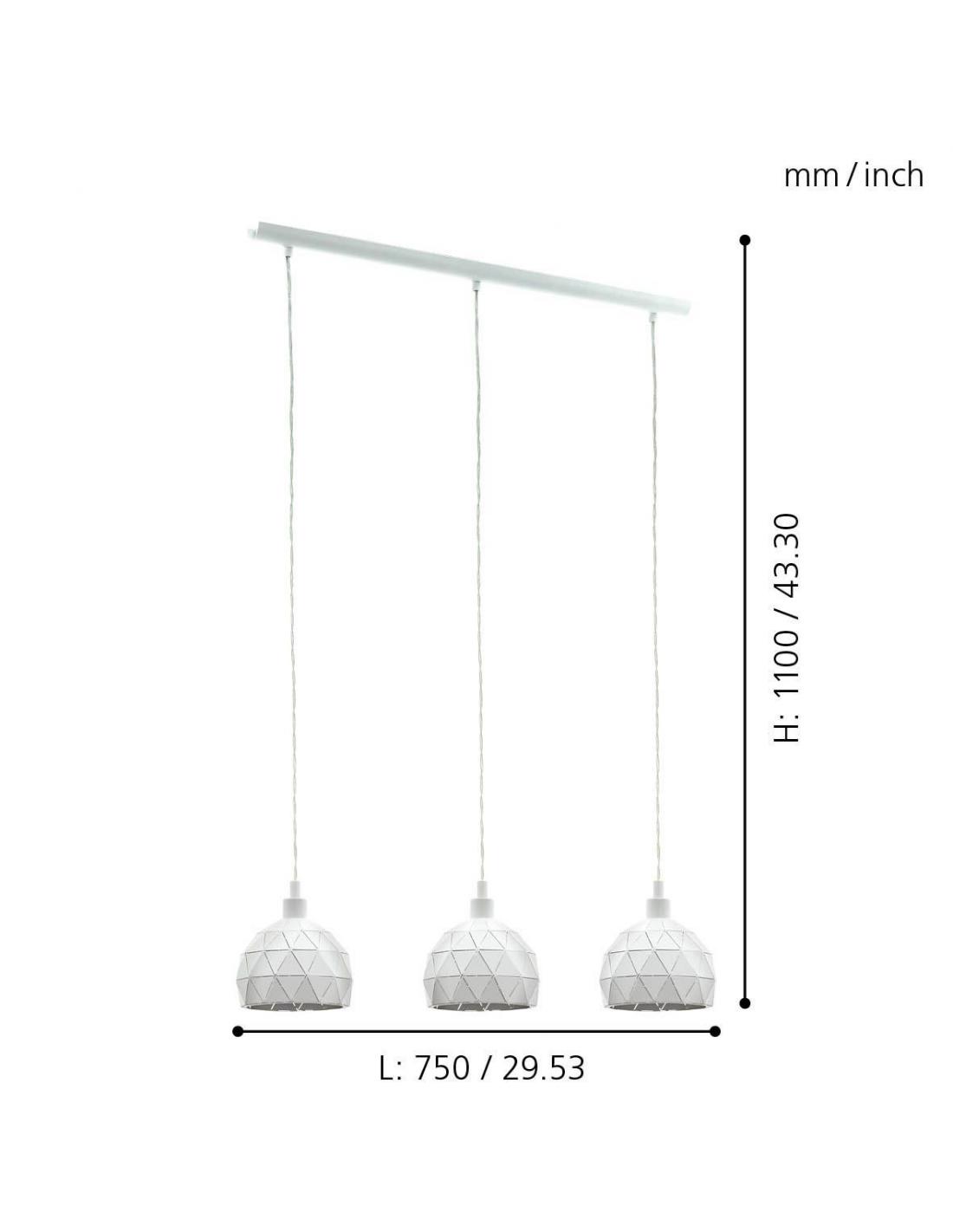 Suspension lamp from the CARLTON 1 series with Steel structure / White gold finish 805x205 H1100 E27 3X60W Not included
