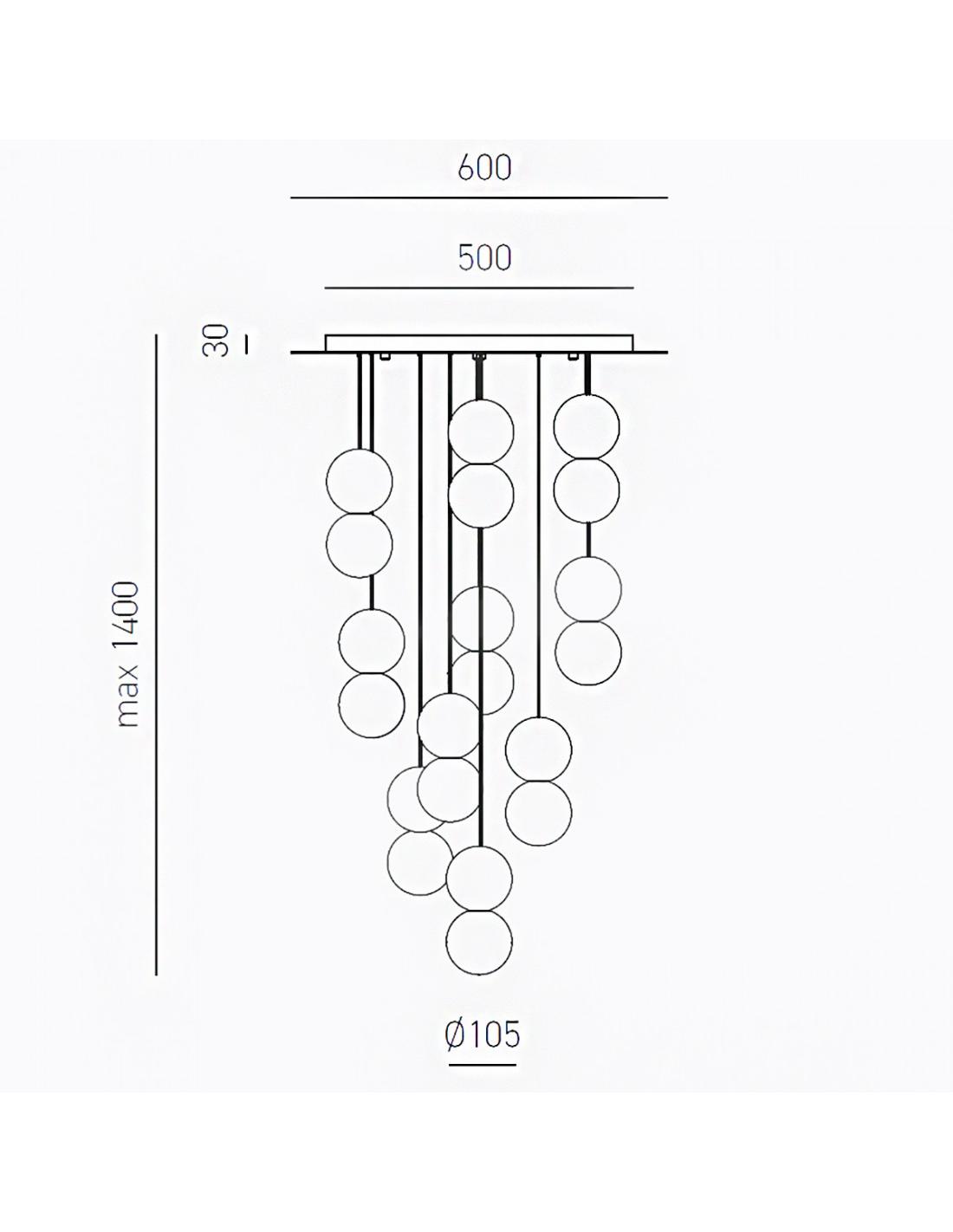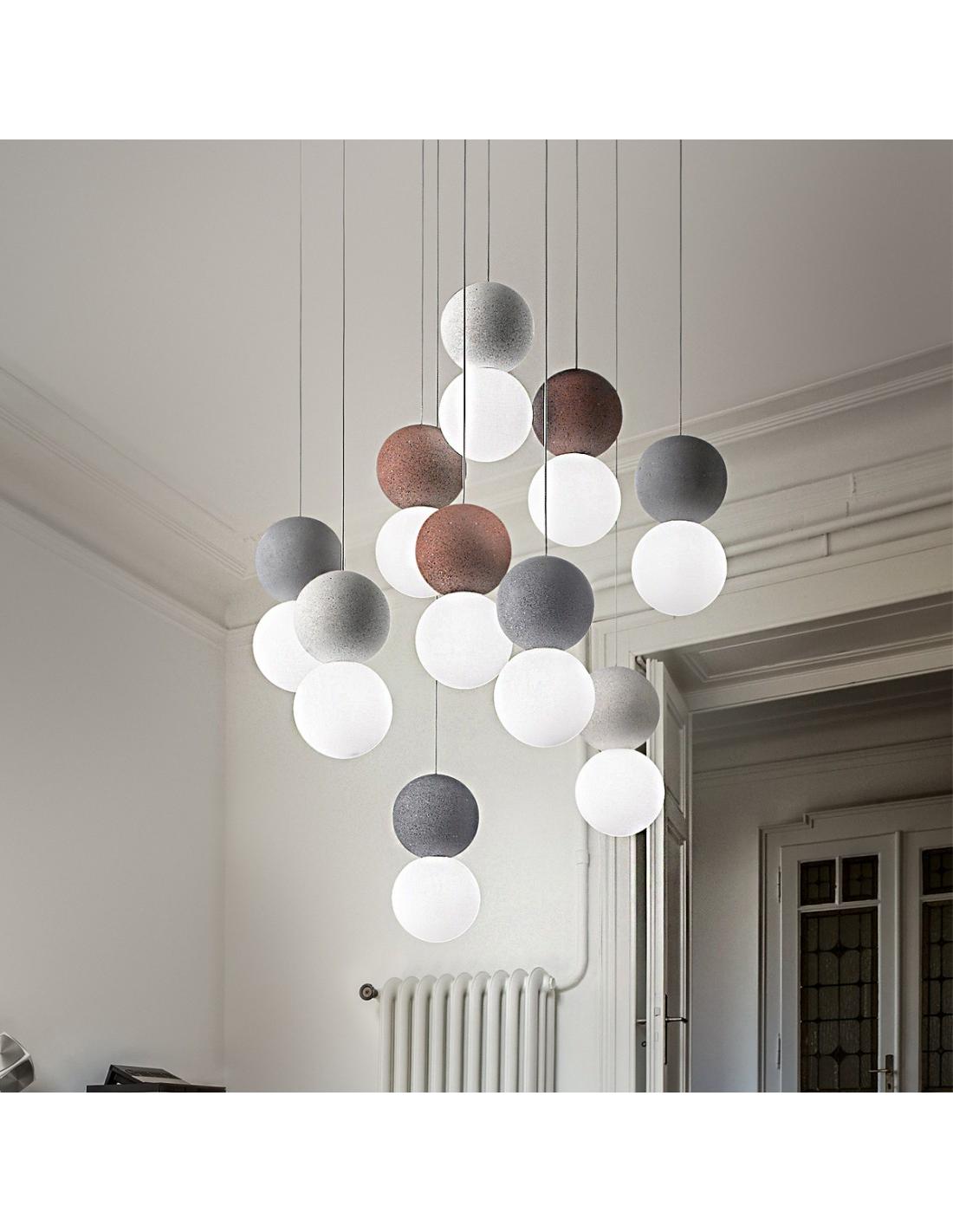 Imposing and design chandelier for rooms of a certain size and importance. A suspension lamp that illuminates, diffuses light and gives a touch of color to the room. Nice staggered spheres for a modern contemporary decor.