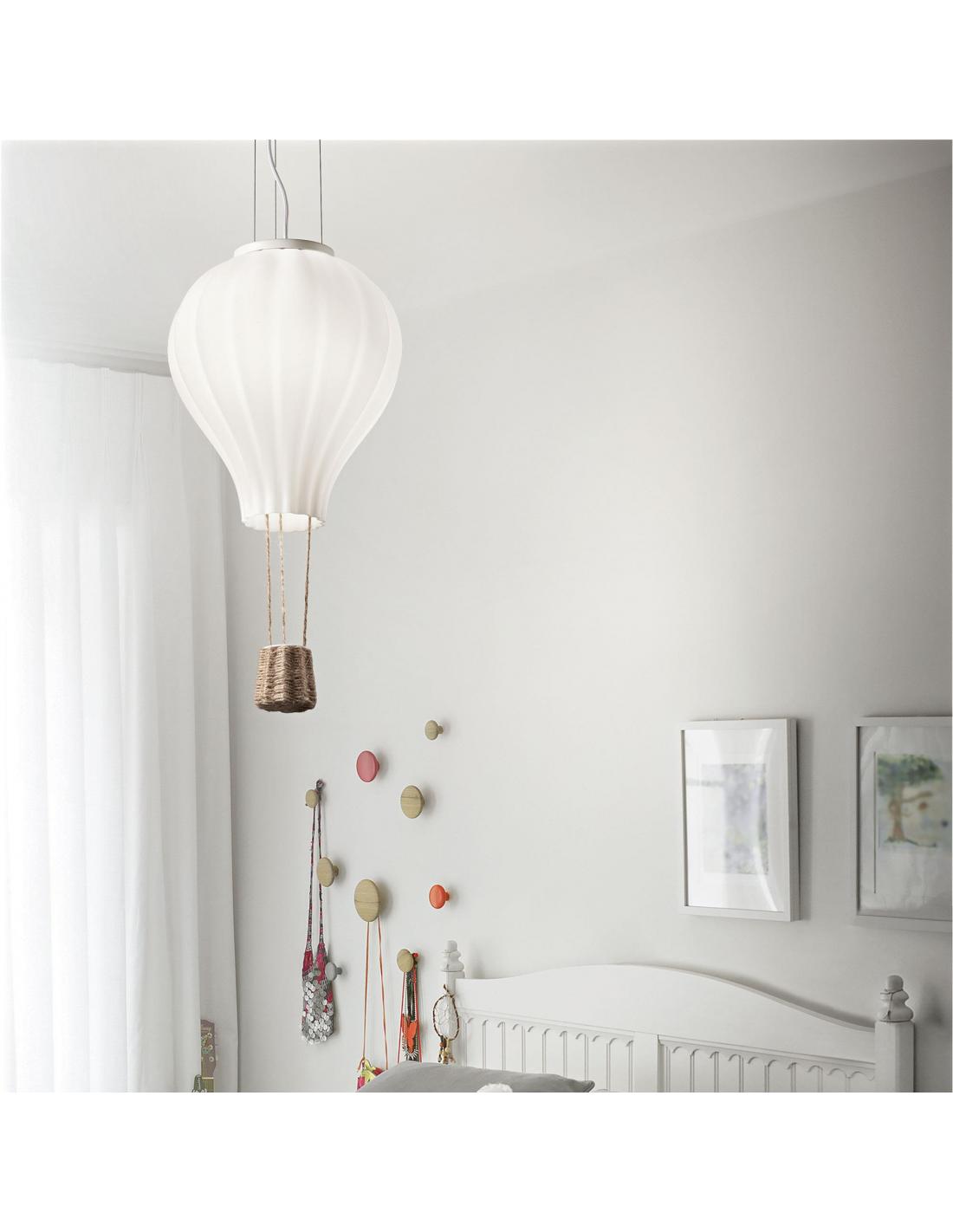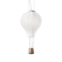 Ceiling rose in metal painted matt. Fabric cable. Diffuser in glass blown white acid-etched. The basket in the string.