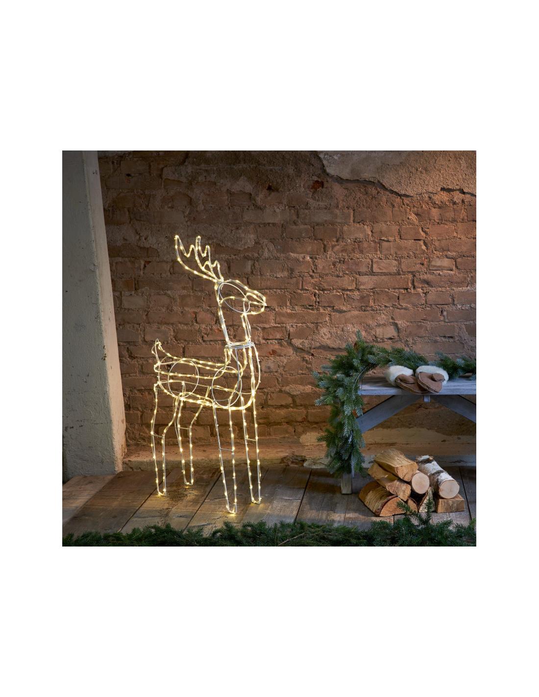 TUBY DEER is a Christmas LED reindeer decoration, featuring a sturdy metal frame outlined with warm white LED lights along its entire profile.
