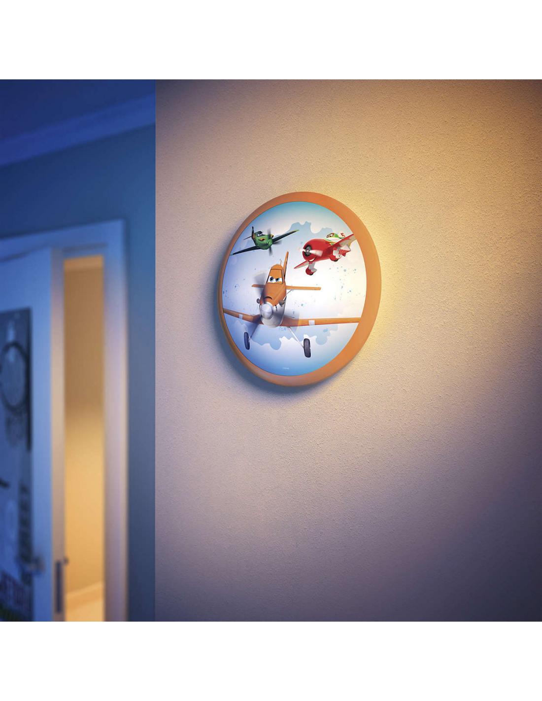 This lamp round Philips and Disney Planes lights up with a lively picture of the characters of Planes the most loved by your child. Brings joy and color to the walls and ceilings, while the sturdy rounded design is safe for small and curious hands of children.