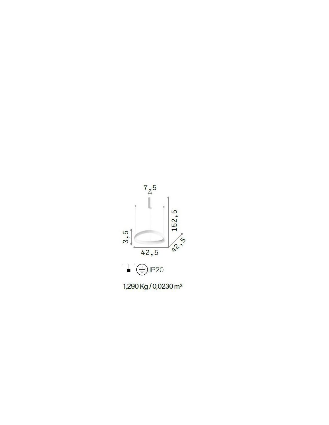Suspensione lamp with rosette and lampshade in powder-coated or plated metal. Opal polycarbonate diffuser.