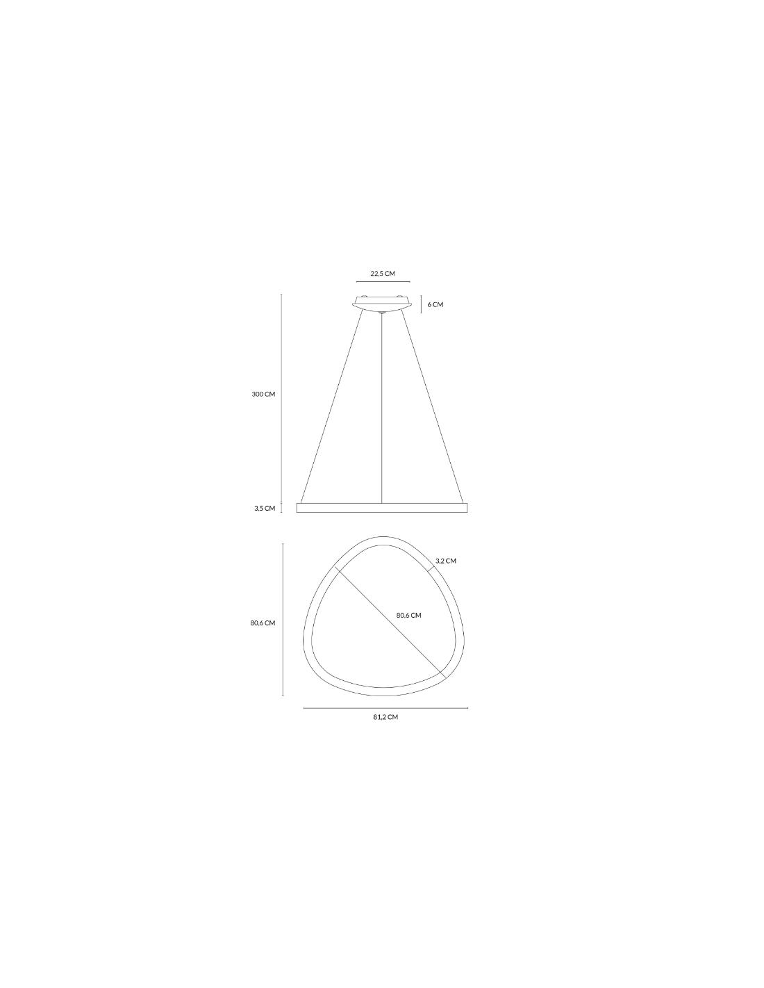 A large chandelier from the Lifering series with integrated LED light by Vivida International with an original design with a triangle shape with rounded edges and a very thin 3.5cm thickness.