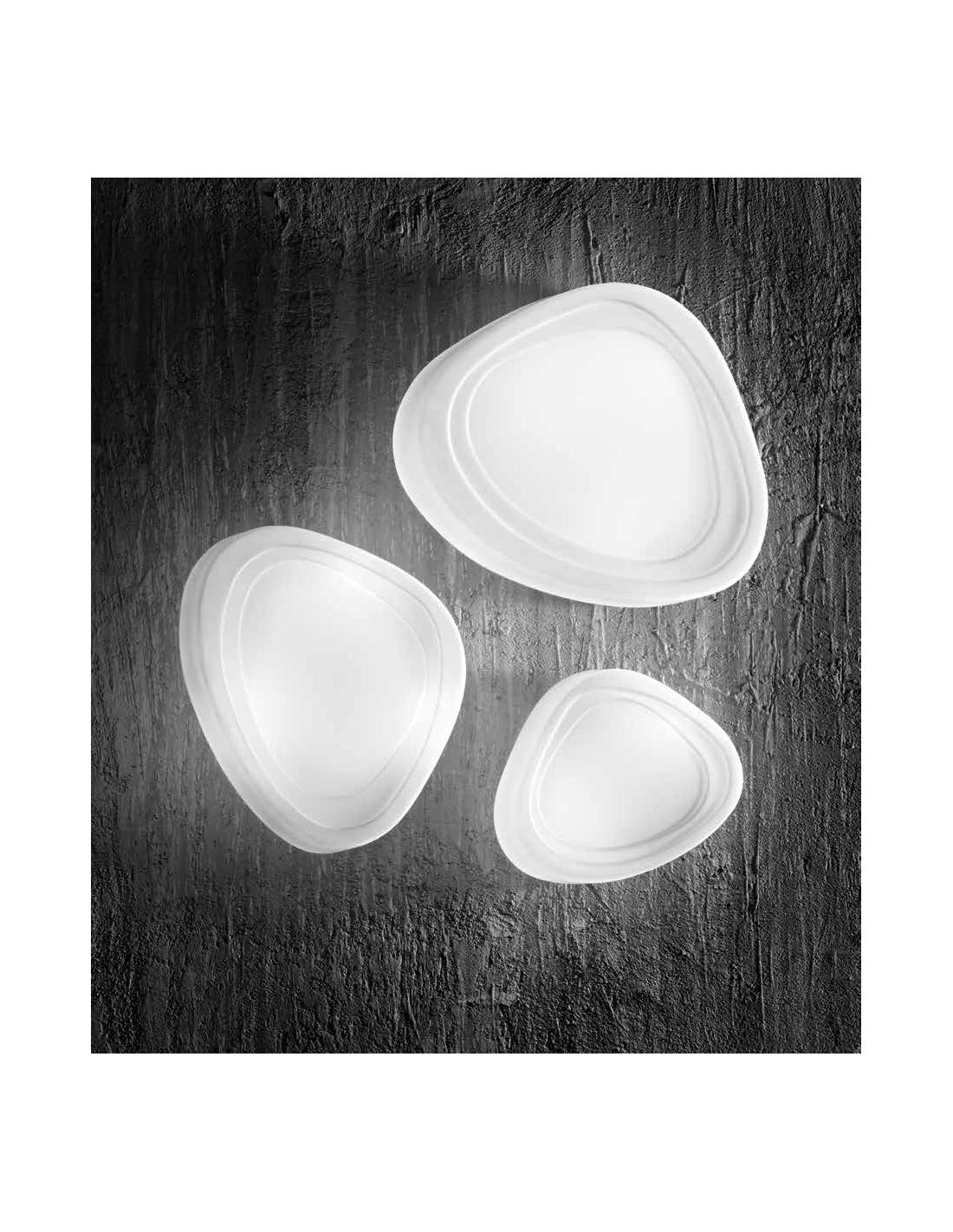 Mantra lighting, ceiling light, modern structure in chromed metal and diffuser in methacrylate white crystal effect.