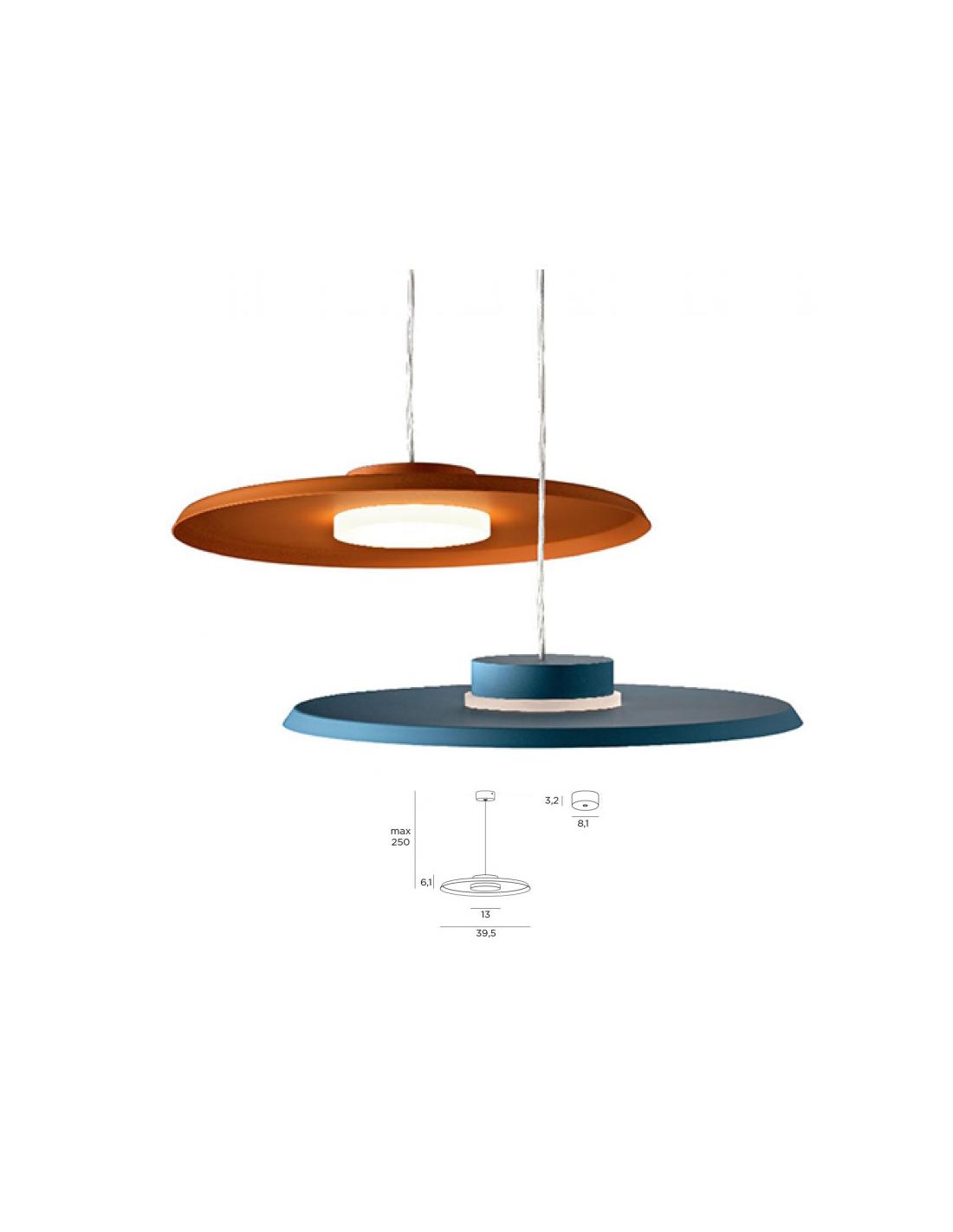 Suspension lamp for light biemissione with LED light source. Body and ceiling rose in spun aluminium and painted matt white.