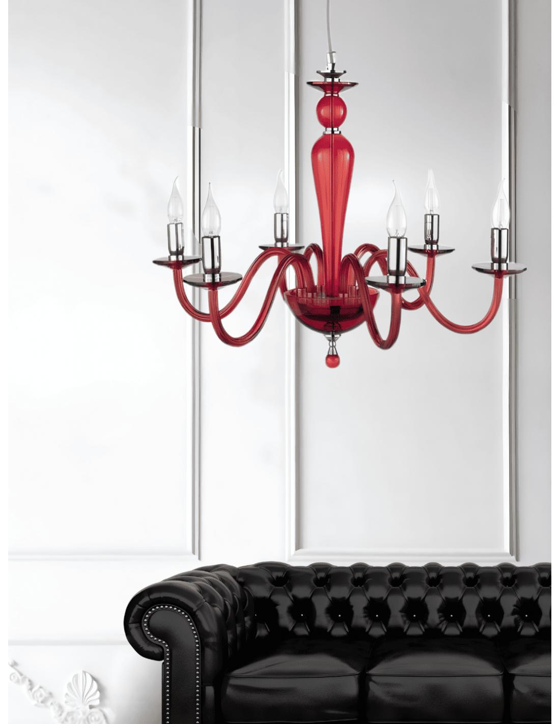 Handcrafted glass collection. Optical crystal details. Metal finishes. Height-adjustable steel cables. Available in different colors: white, teal, amber, burgundy, ruby, gold and chrome.
