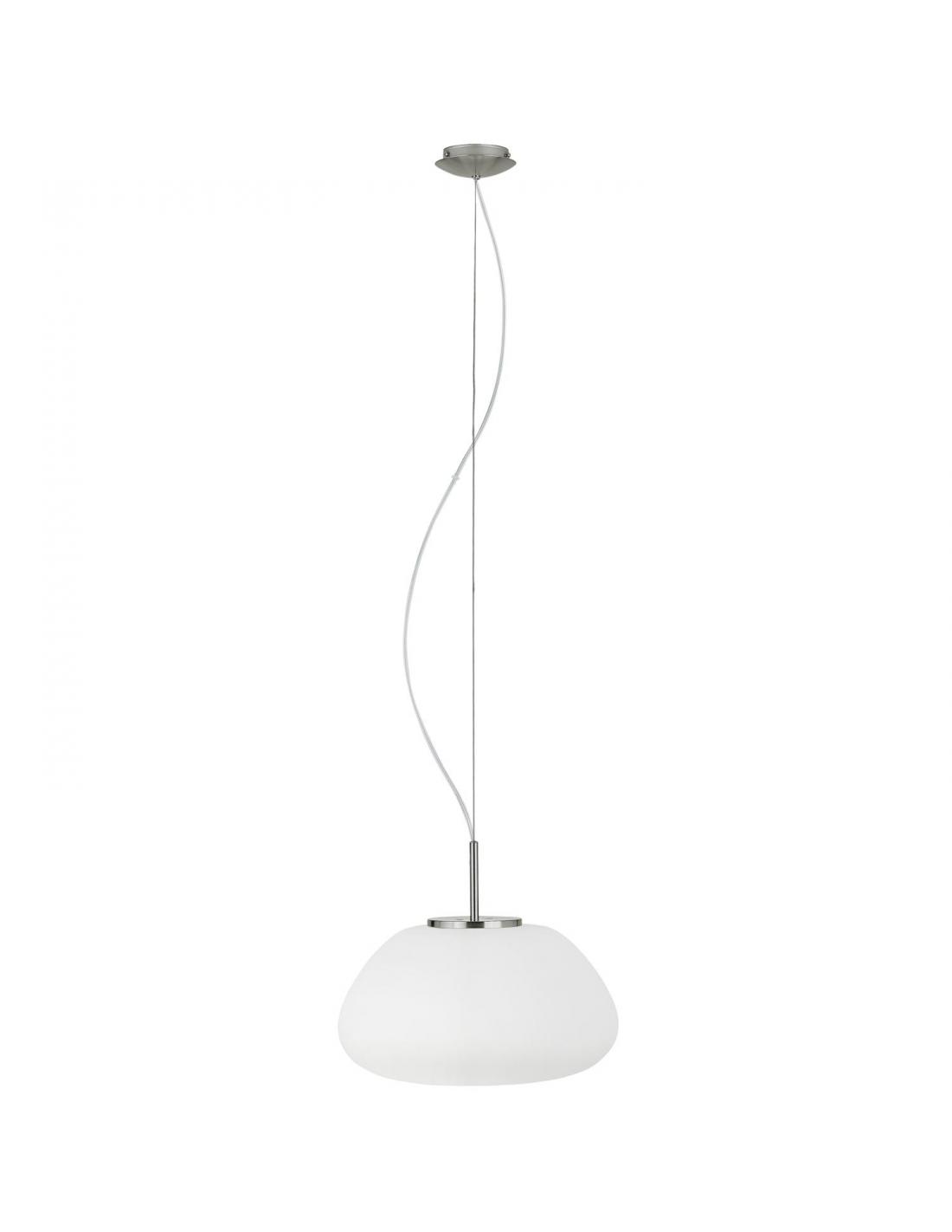 Suspension lamp with structure in steel color matt nickel and glass diffuser opal white. Height adjustable.