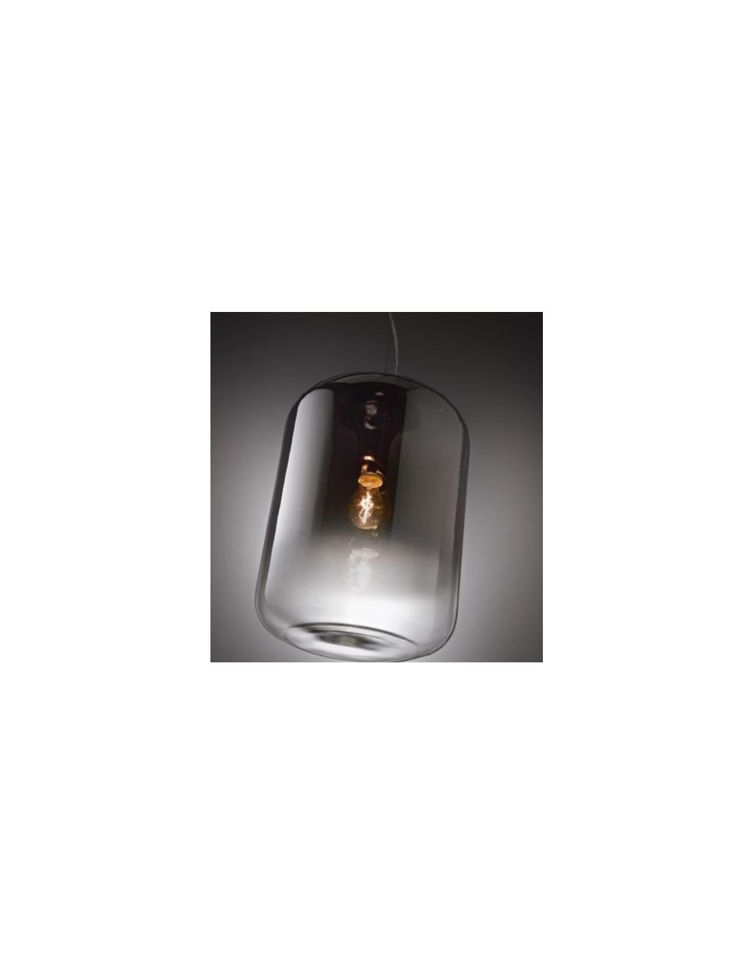 Frame in chromed metal. Diffuser in glass blown white acid-etched or tinted. The steel cable-length adjustable with devices that stops the cable automatic.