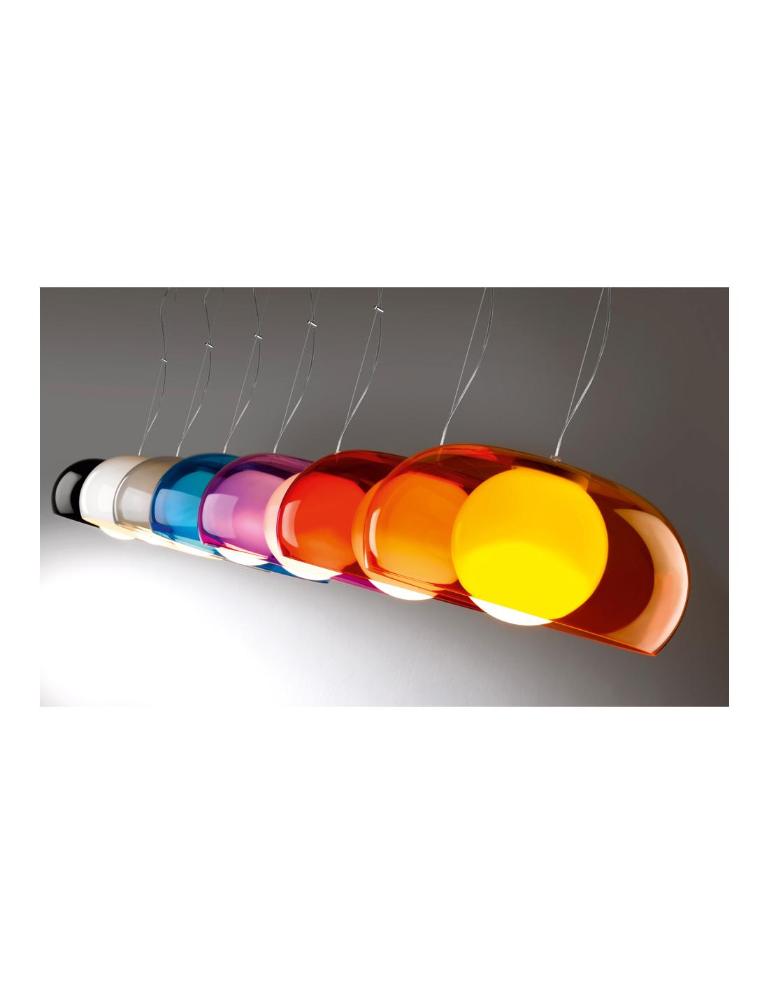 Body, acrylic coloured, spherical opal. Direct power supply 230V. The length of the cables adjustable.