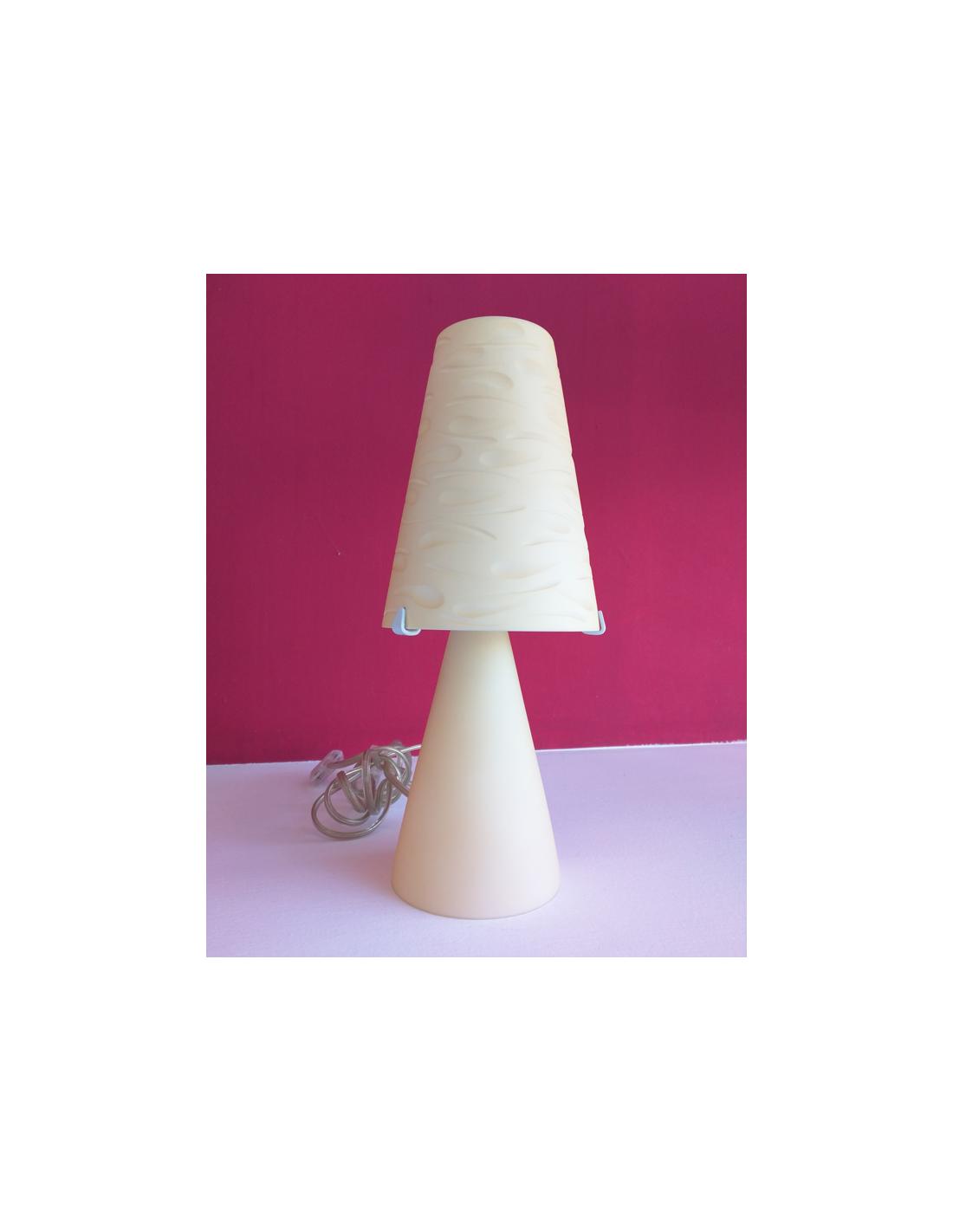 Frame and base in chrome metal with decorative elements in cut crystal. Lampshade in PVC sheet, coated fabric with decoration, quilted and glitter silver.