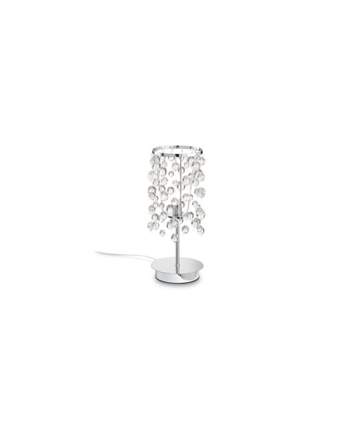 Matt white metal frame (photos are purely indicative). Transparent and white glass beads as decorative elements, perforated and secured at transparent nylon cables. The nylon cables are attached to the frame via metal clips.