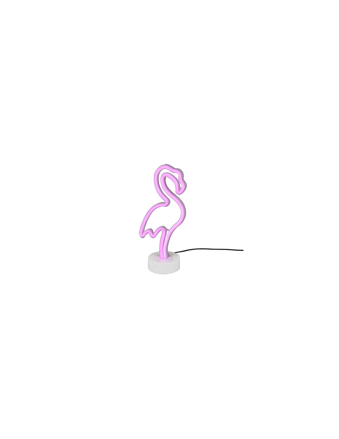 LED lamp in the shape of a pink flamingo, a plastic material, equipped with on/off switch, power through USB connection.
