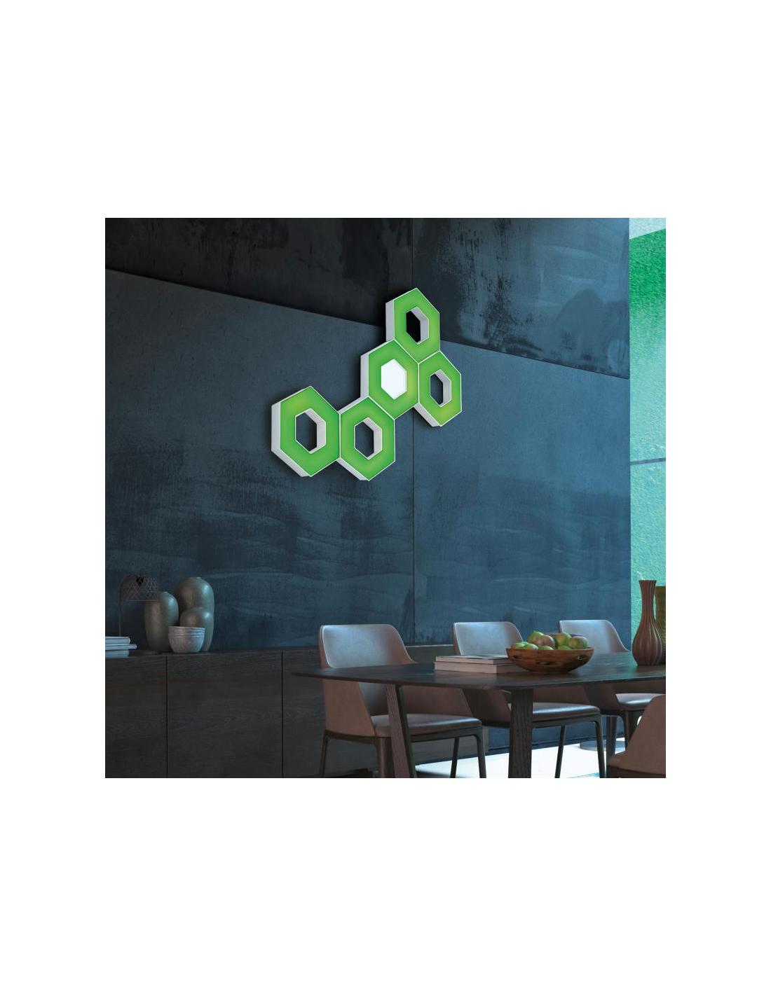RGB wall or ceiling lamp with remote control. The luminaire is dimmable, varies the white temperature from warm to cold and has night light, includes colored light effect.