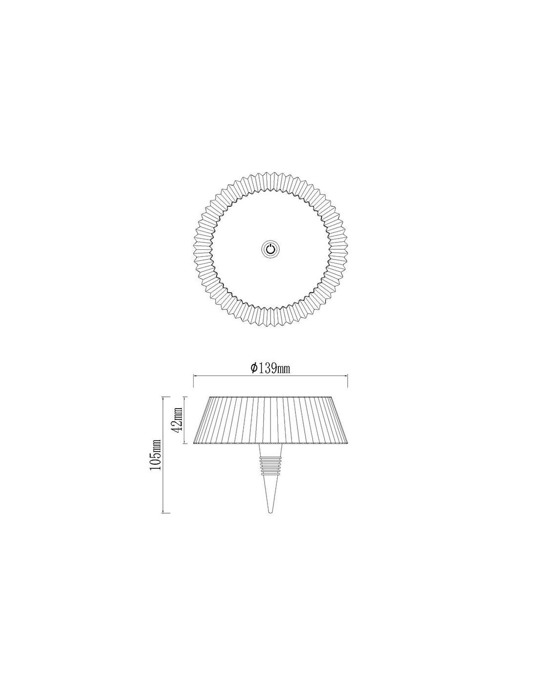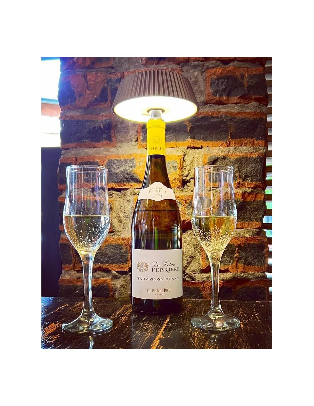 Lampada da tavolo ricaricabile (durata 9h) con particolare struttura che ne consente l'utilizzo anche come tappo per bottiglia luminoso. Lampada utilizzabile anche all'esterno.