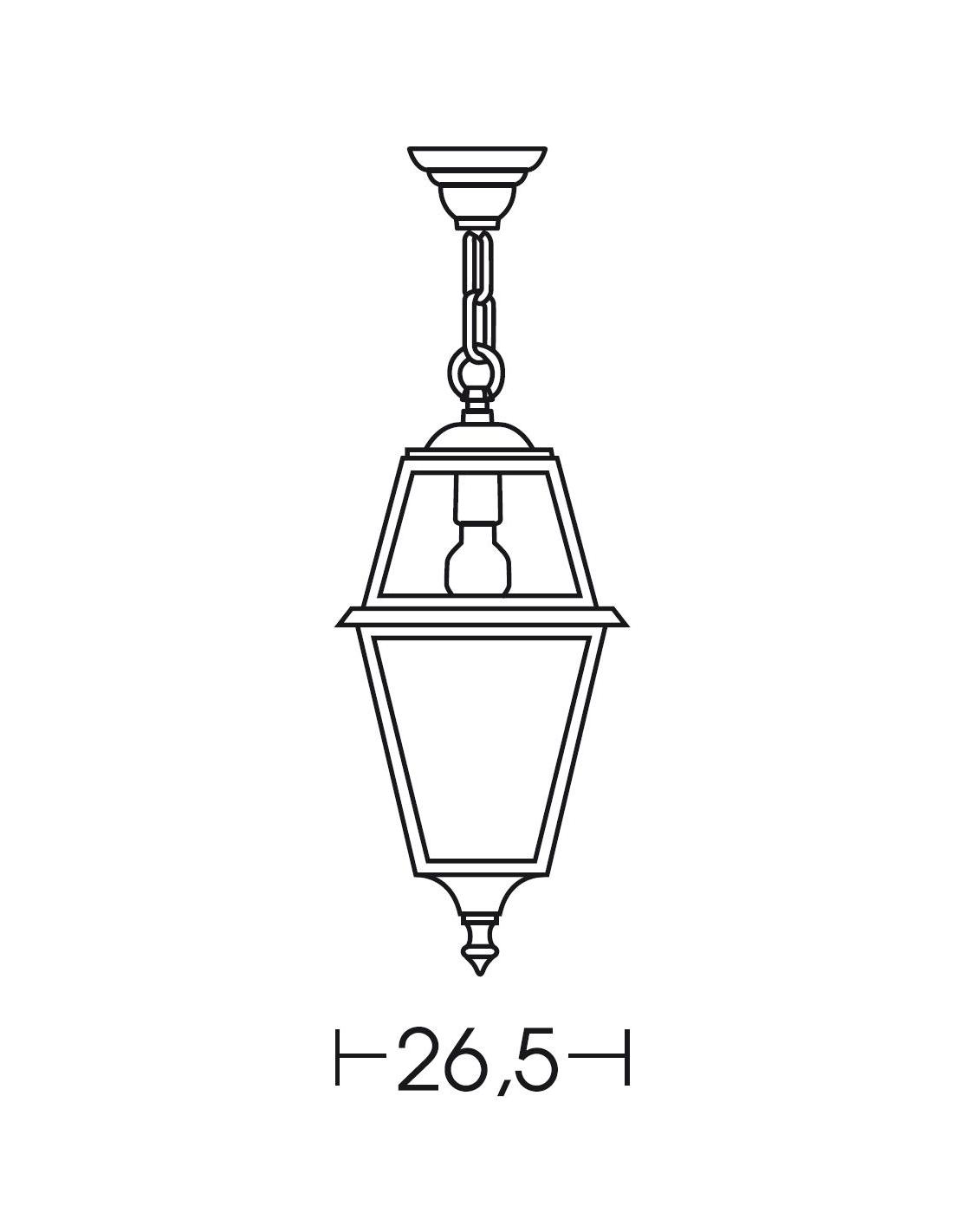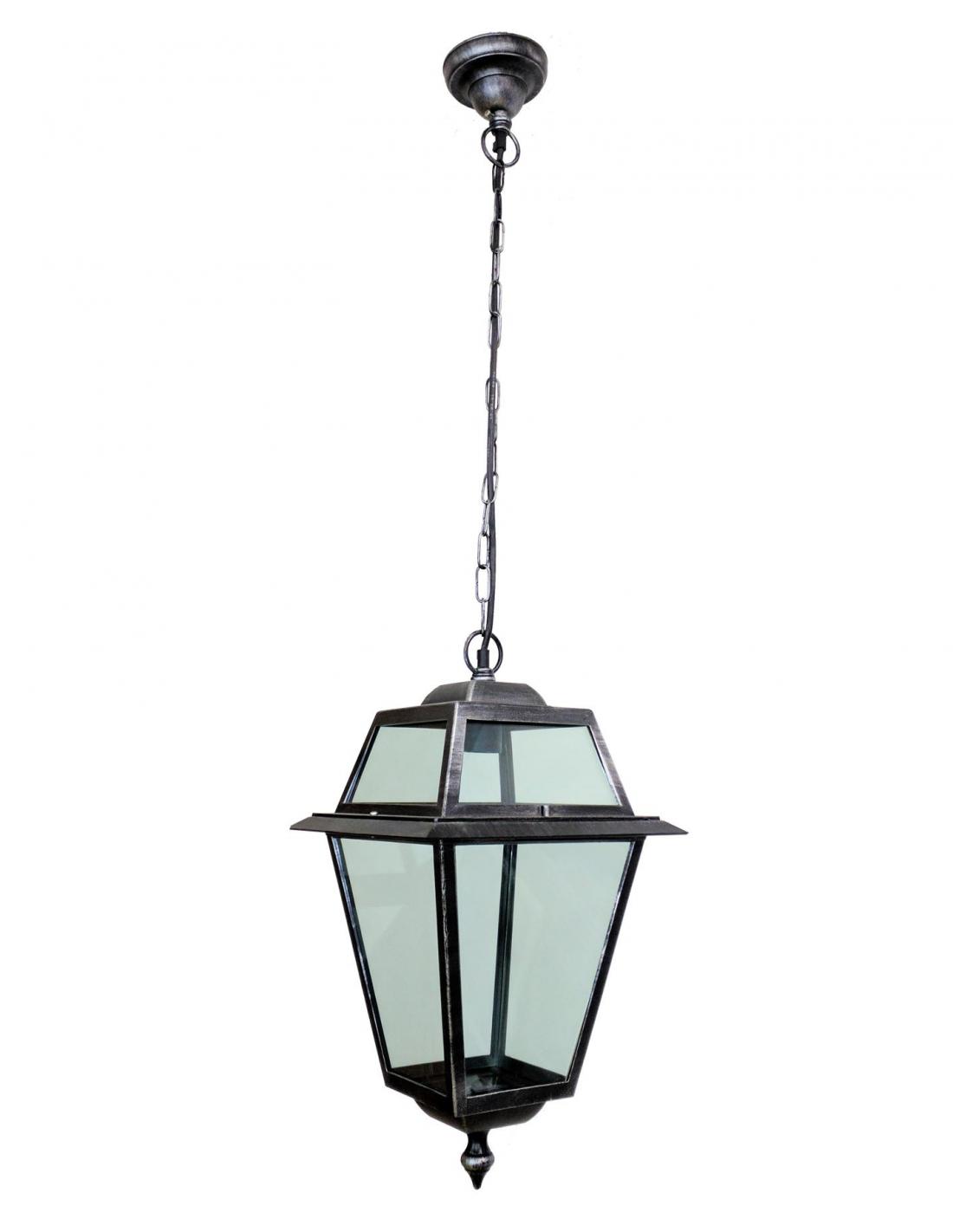 Lampada a sospensione per esterni con struttura in alluminio pressofuso colore nero/ramato, singola emissione, diffusore in policarbonato trasparente.