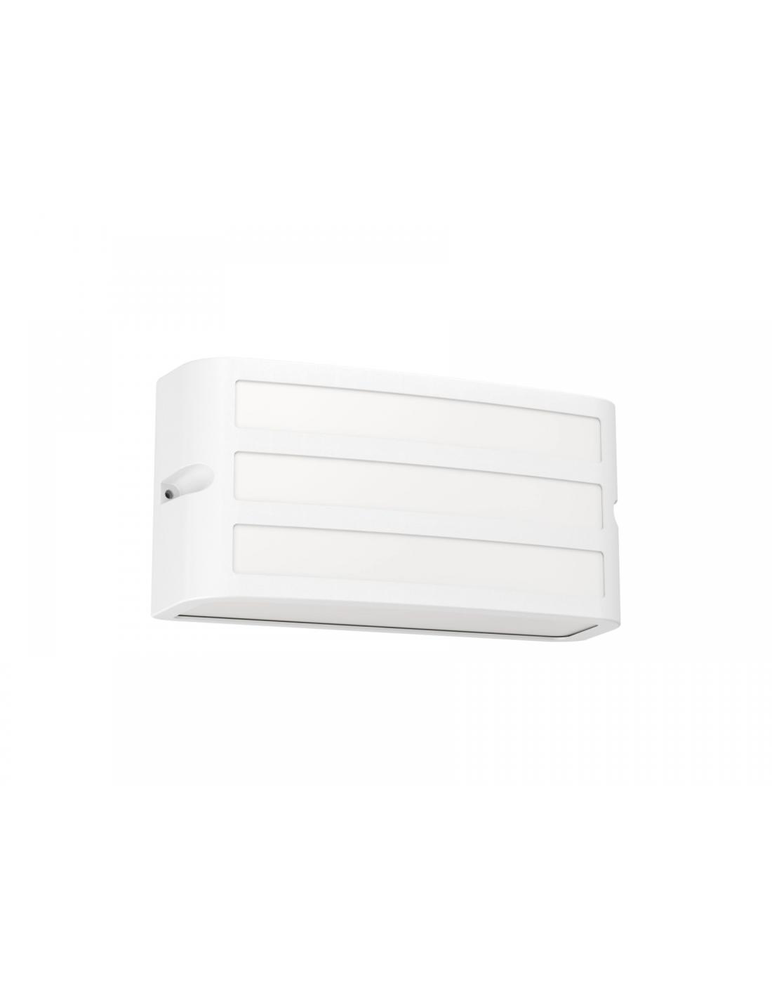 Applique da parete per esterno con struttura in alluminio bianco e diffusore in policarbonato bianco.