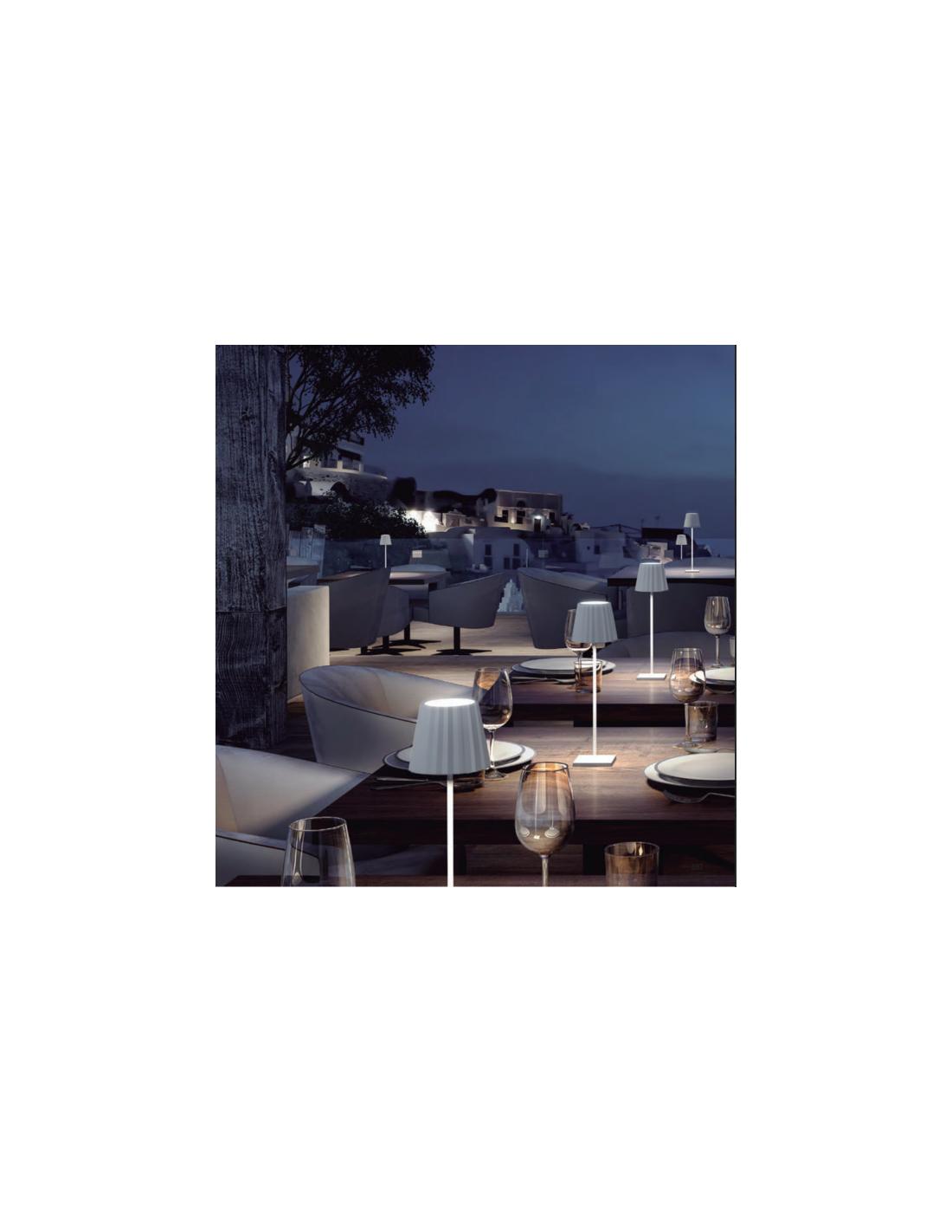Lampada da tavolo in metallo, per interno o per esterno, con illuminazione LED 2,5W e regolazione della luce al tocco.