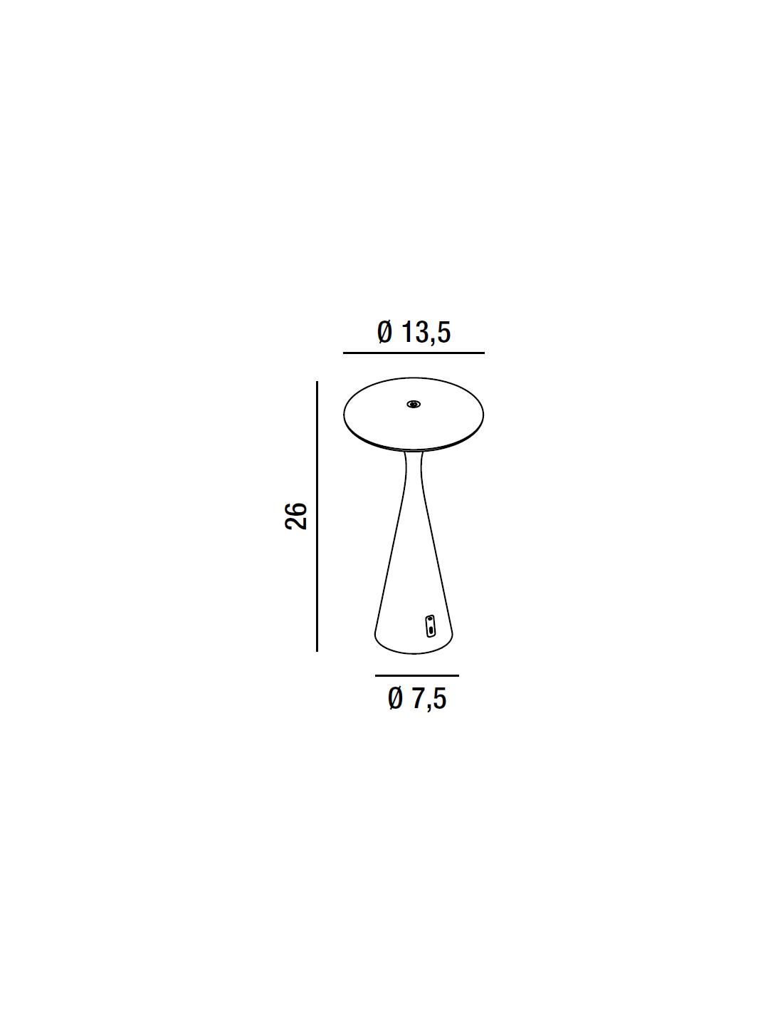 Lampada da tavolo ricaricabile in lluminio pressofuso verniciato a polvere per uso interno o esterno. Diffusore in acrilico satinato.