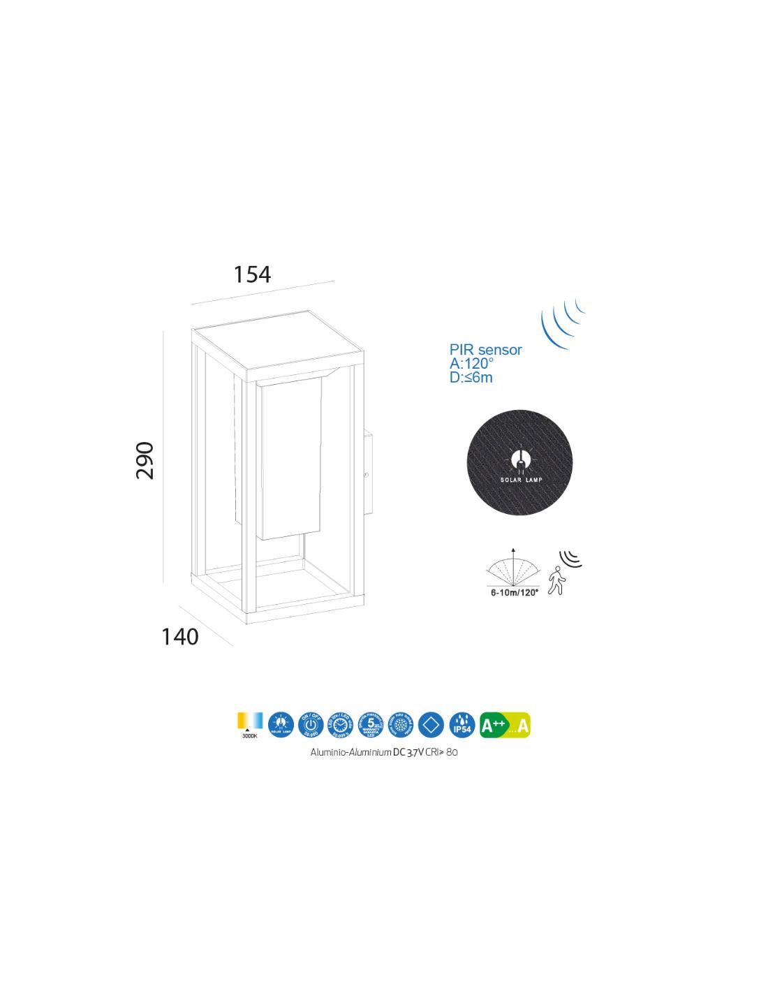 Mantra 7086 Meribel Applique solare LED per esterni Grafite con sensore di movimento