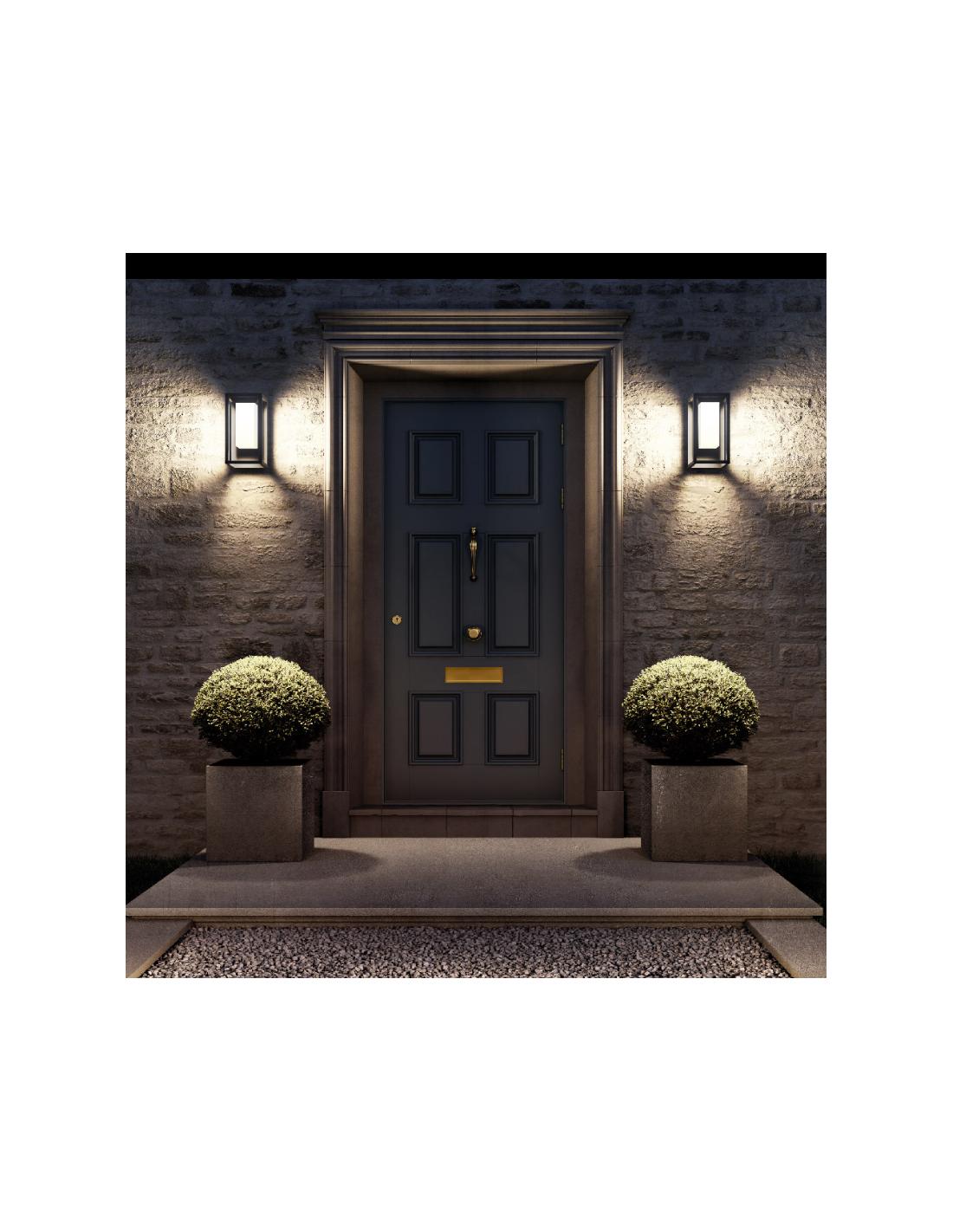 ll telaio in alluminio di questa lampada da parete a LED per esterni è in alluminio grigio scuro e il diffusore in policarbonato opale assicura che la luce LED penetri nell’ambiente circostante con la sua piena luminosità e contribuisca a un’illuminazione brillante.