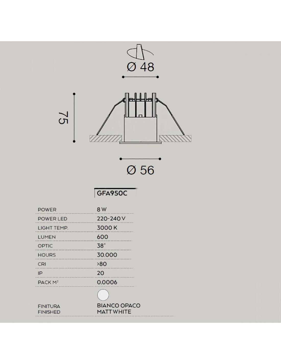Mini faretto LED da incasso in lega alluminio 120° 1W - 350mA 6400°K. Finitura Cromo.