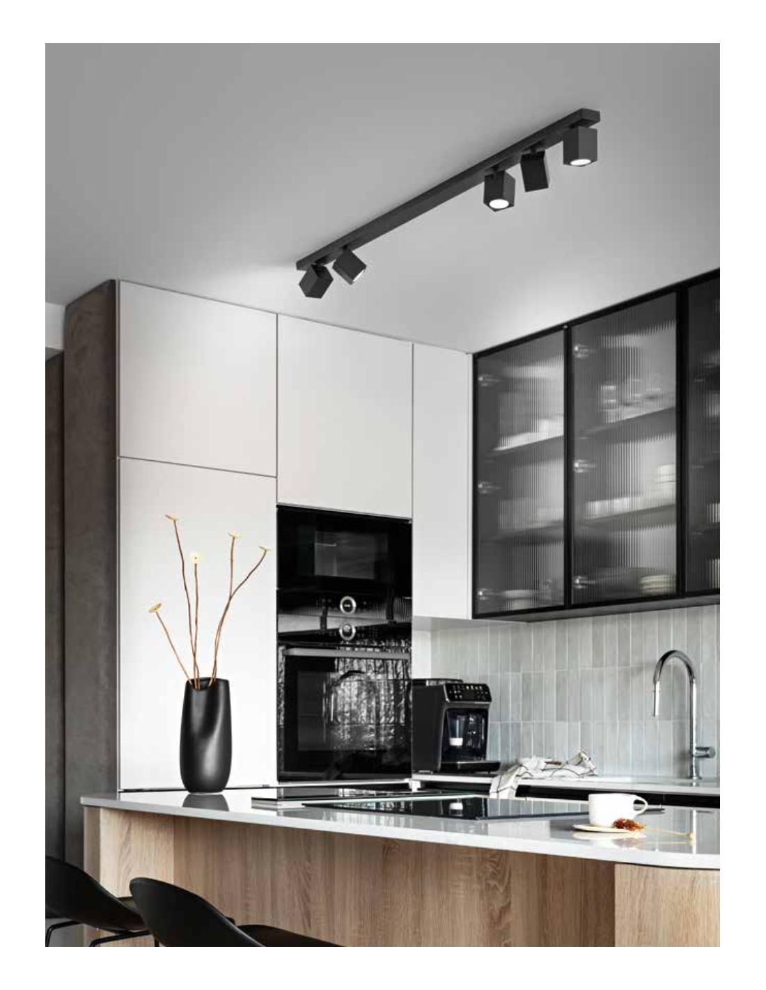Collezione ODDY by Perenz. Lampada da soffitto dal design moderno e contemporaneo, perfetto per illuminare una cucina o una penisola e ogni ambiente in cui è necessario orientare la luce in direzioni divere. La lampada è infatti caratterizzata da 5 faretti orientabili.