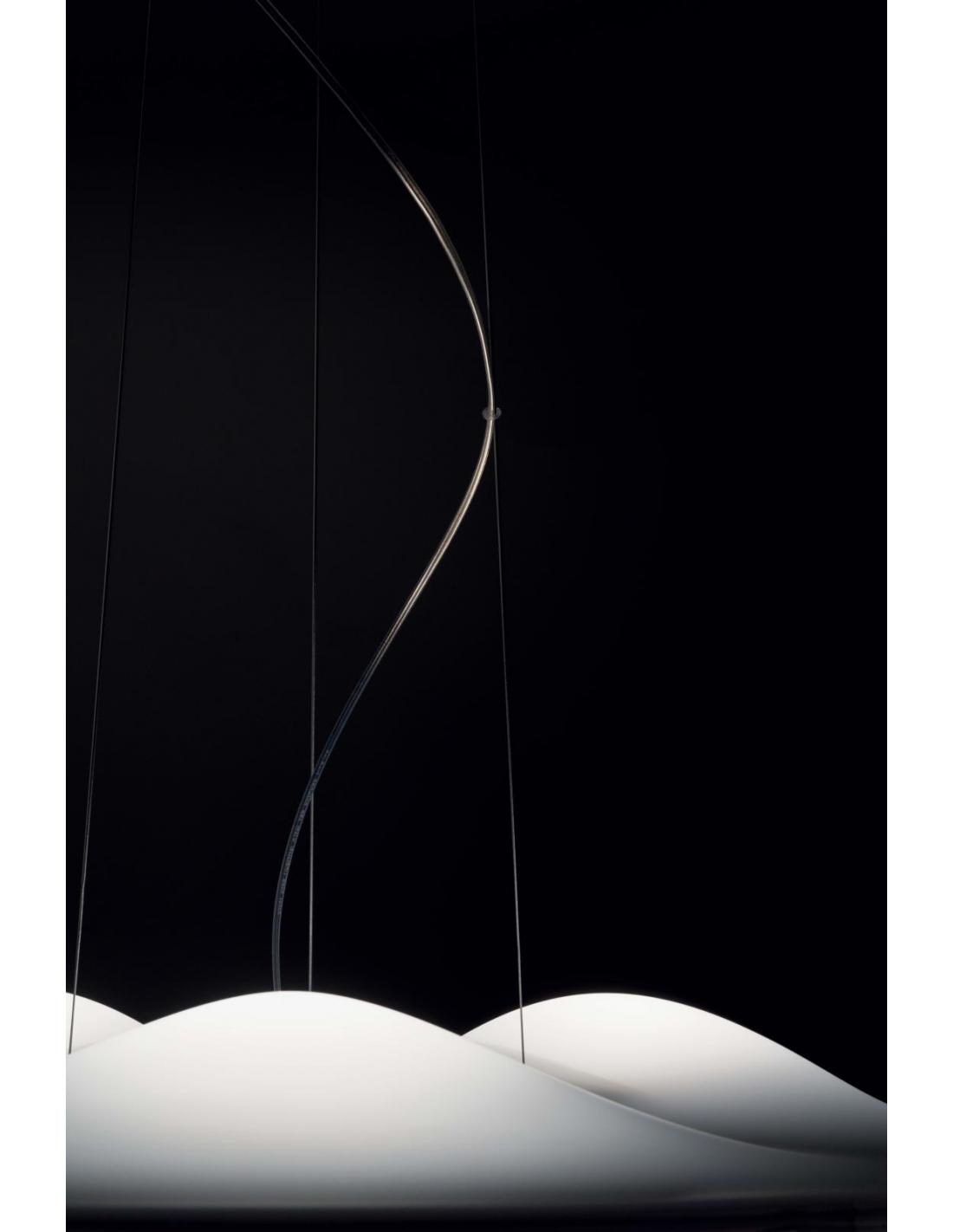 Sospensione a doppia emissione per applicazione indoor. La sorgente luminosa LED, di colore bianco caldo, con distribuzione luminosa diffusa, è composta da 144 LED topled, con una CCT 3000 K ed un CRI 90; il flusso luminoso della sorgente è di 3442 lm, con un'efficienza nominale di 138.1 lm/W ed una durata operativa (L80) di 80000 ore.