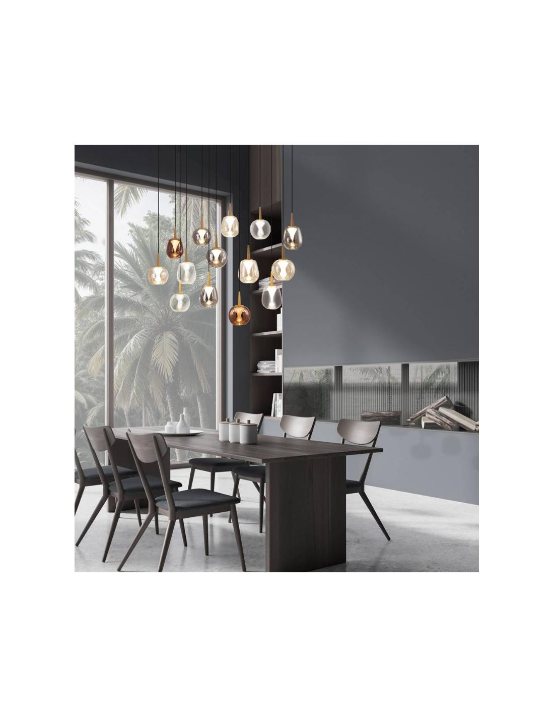 La sospensione Andromeda 5 luci è una lampada elegante e moderna progettata per valorizzare ambienti raffinati come hotel, ristoranti, hall,