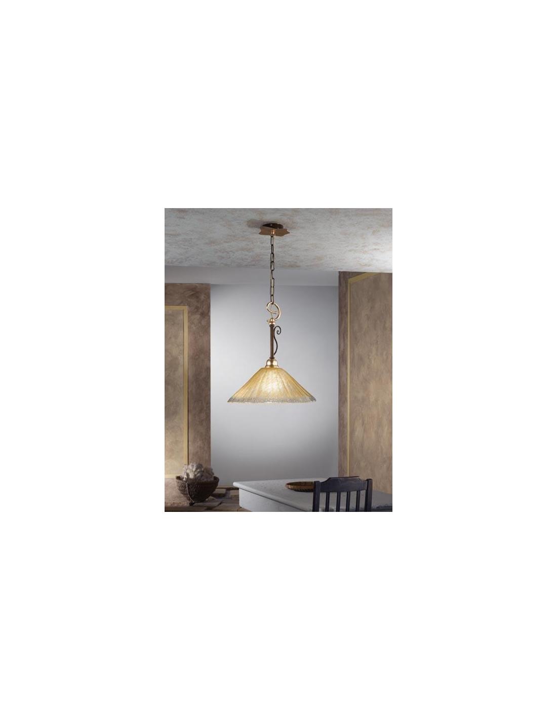 Diffusore in vetro lavorato interamente a mano in colore ambra. Montatura oro