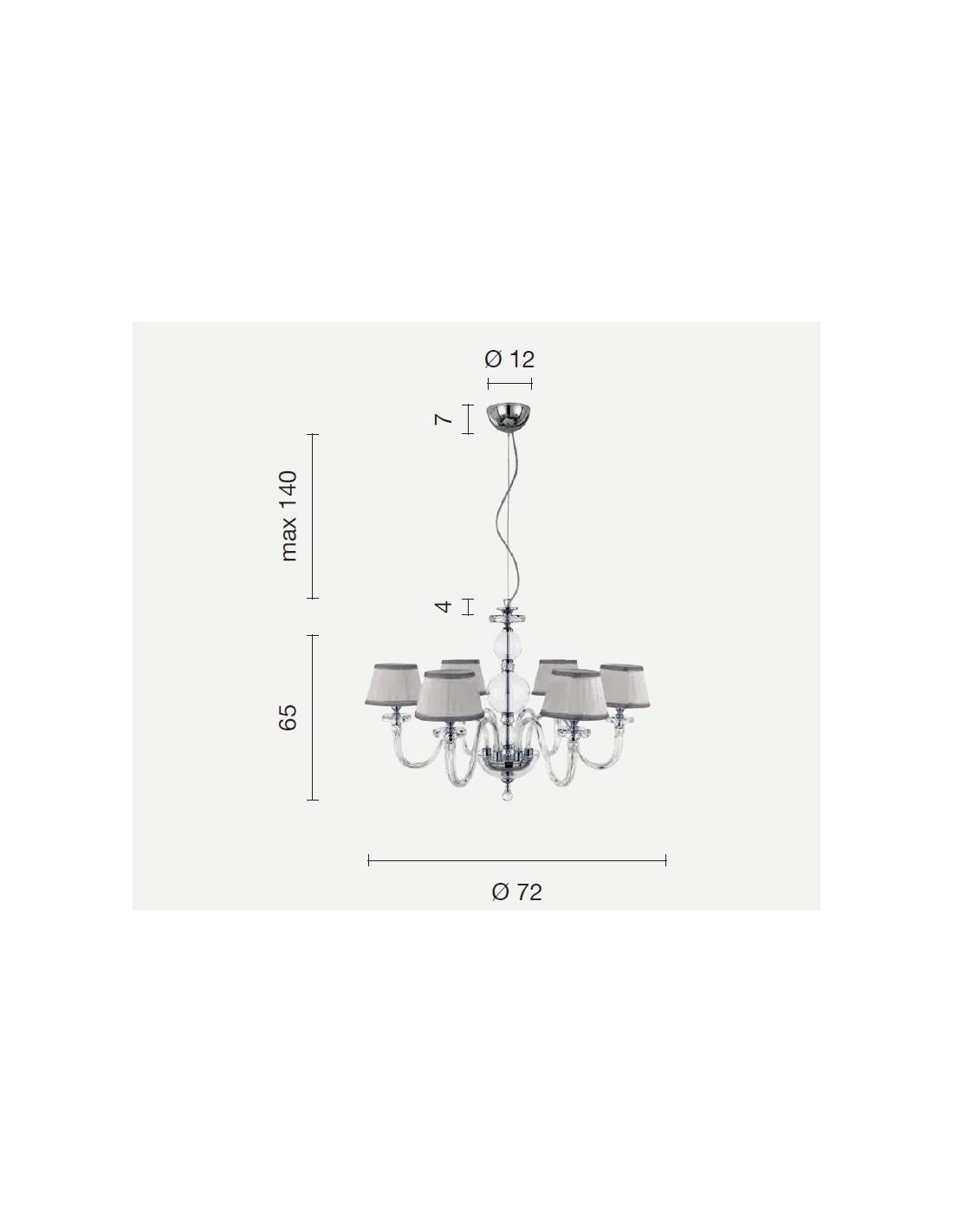 I suoi 6 portalampade con attacco E14 consentono l'inserimento di lampadine led di ultima generazione, a basso consumo energetico, nel colore e nella potenza che più desiderate, senza danneggiare l'estetica del lampadario.