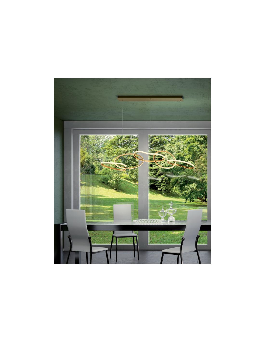 Dispone di LED integrato da 42W con sistema CCT regolabile da 3000K a 6500K, per scegliere la tonalità luminosa più adatta al momento. La lampada è dimmerabile in 3 step, ideale per creare atmosfere personalizzate in soggiorno o in ambienti open space.