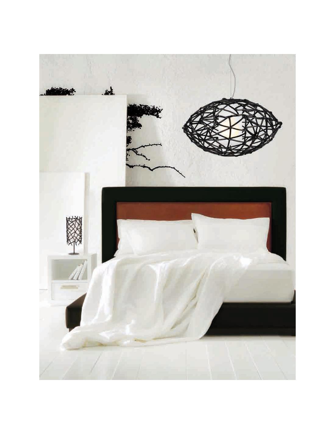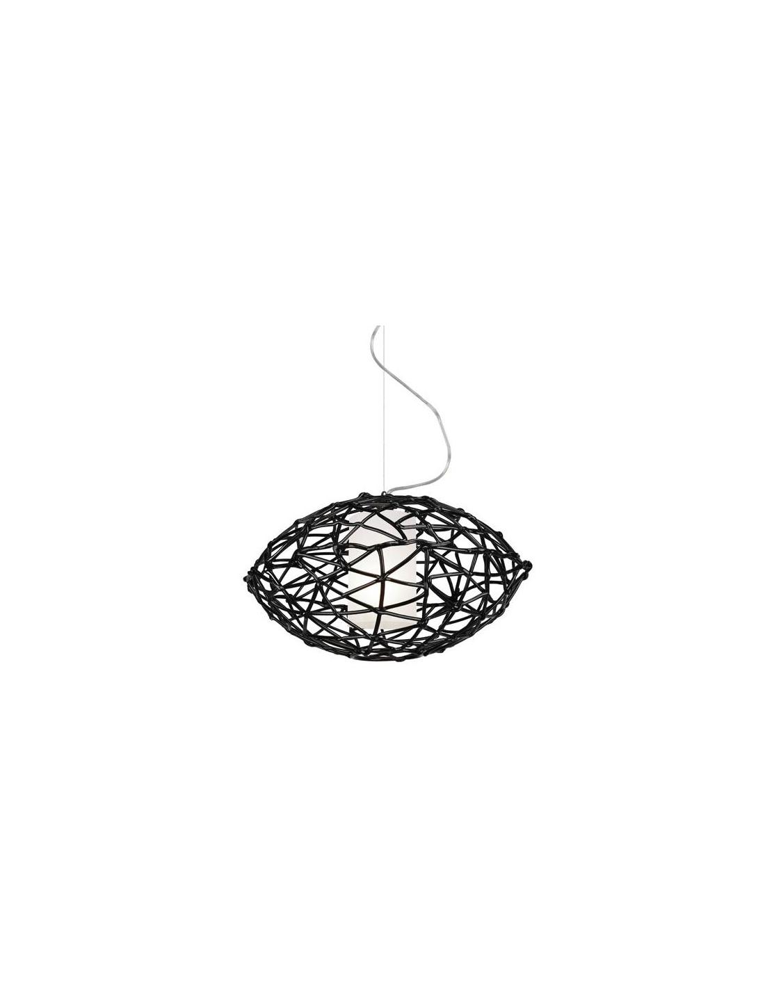 Lampada a sospensione con montatura in metallo cromato e diffusore in acrilico trasparente.