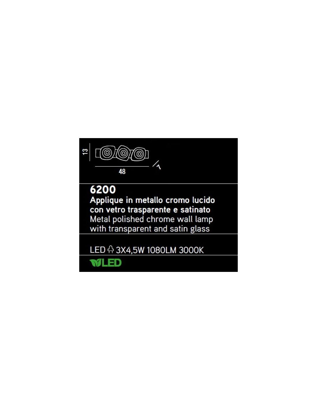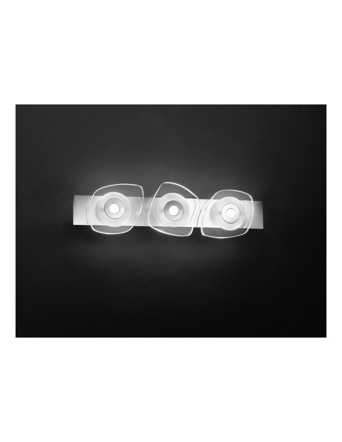 Applique in metallo cromo lucido con vetro trasparente e satinato, led integrato.