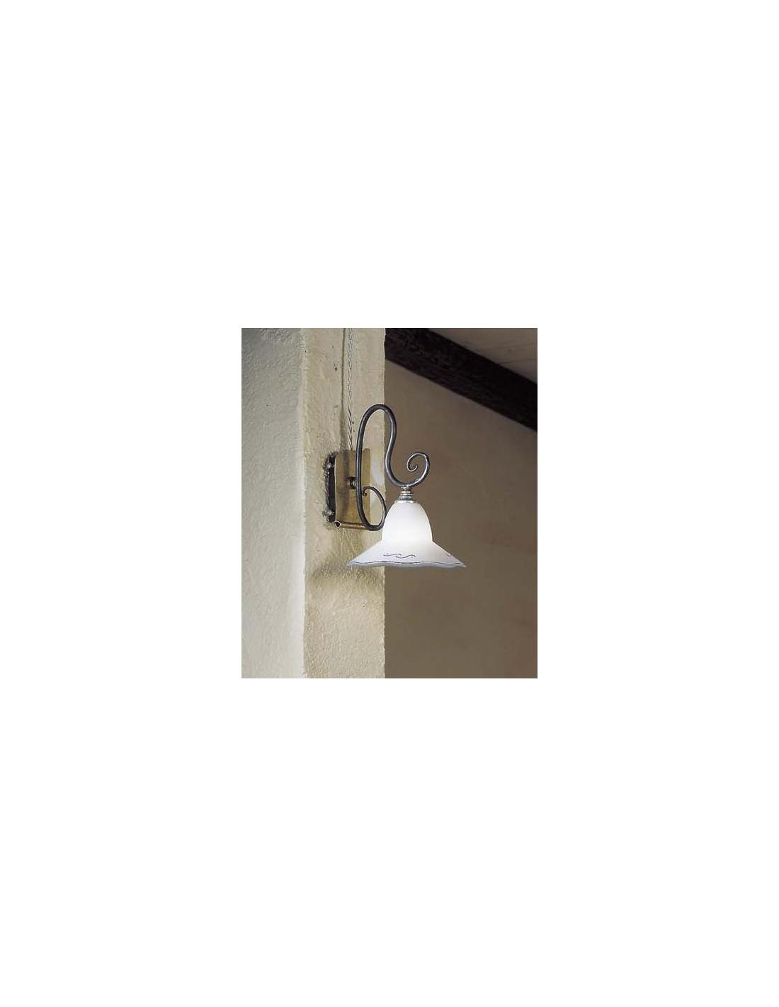 Bilancia a doppia emissione di luce con struttura ruggine/verde rame e vetri ambra satinato. Altezza regolabile
