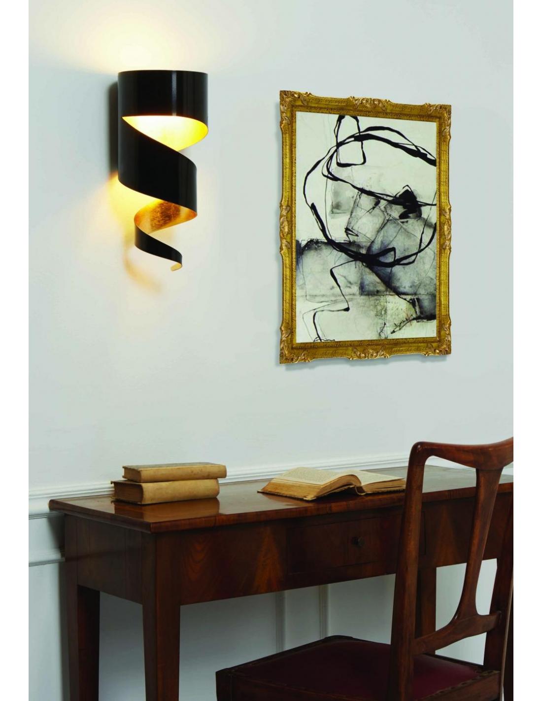 Applique con base in metallo rifinito opaco. Bracci flessibili rivestiti di gomma di colore nero. Diffusori in vetro trasparente soffiato e sabbiato.