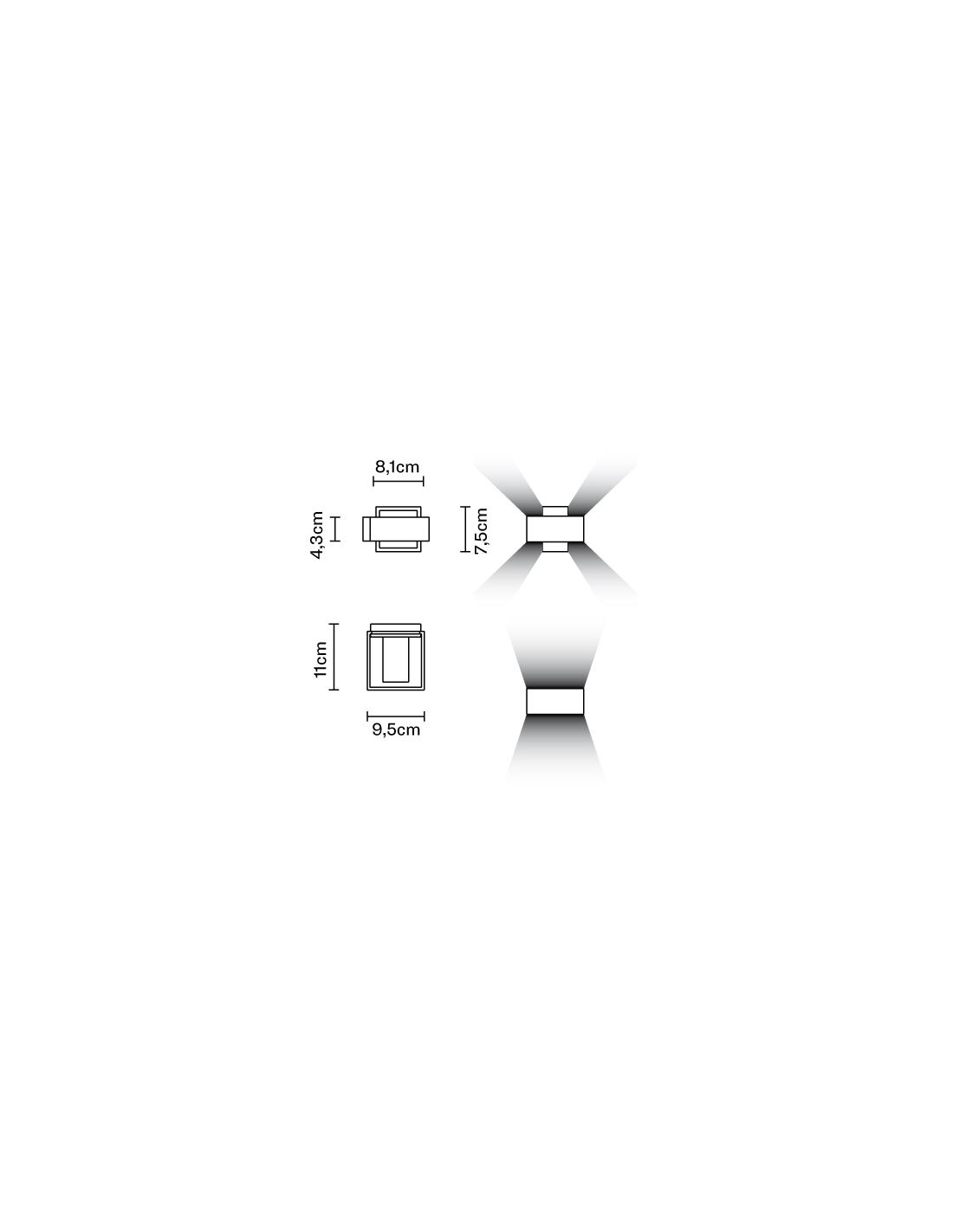 Wally si installa a muro per illuminare con luce radente le facciate e le superfici verticali; il corpo dell’apparecchio, realizzato in pressofusione di alluminio è completo di due led CoB indipendenti ed è configurato per ottenere una doppia emissione, proiettando la luce sia verso l’alto sia verso il basso.