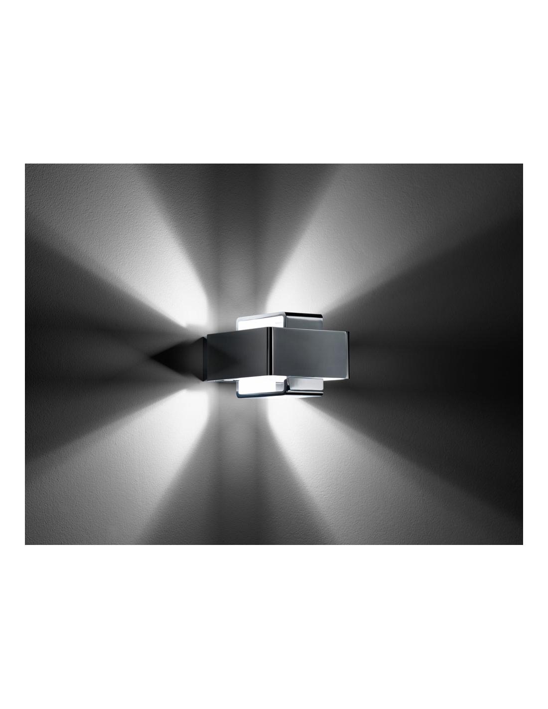 Lampada da parete con montatura in metallo con finitura disponibile in cromo, brunito o nickel. Diffusori indipendenti tra loro e posizionabili.