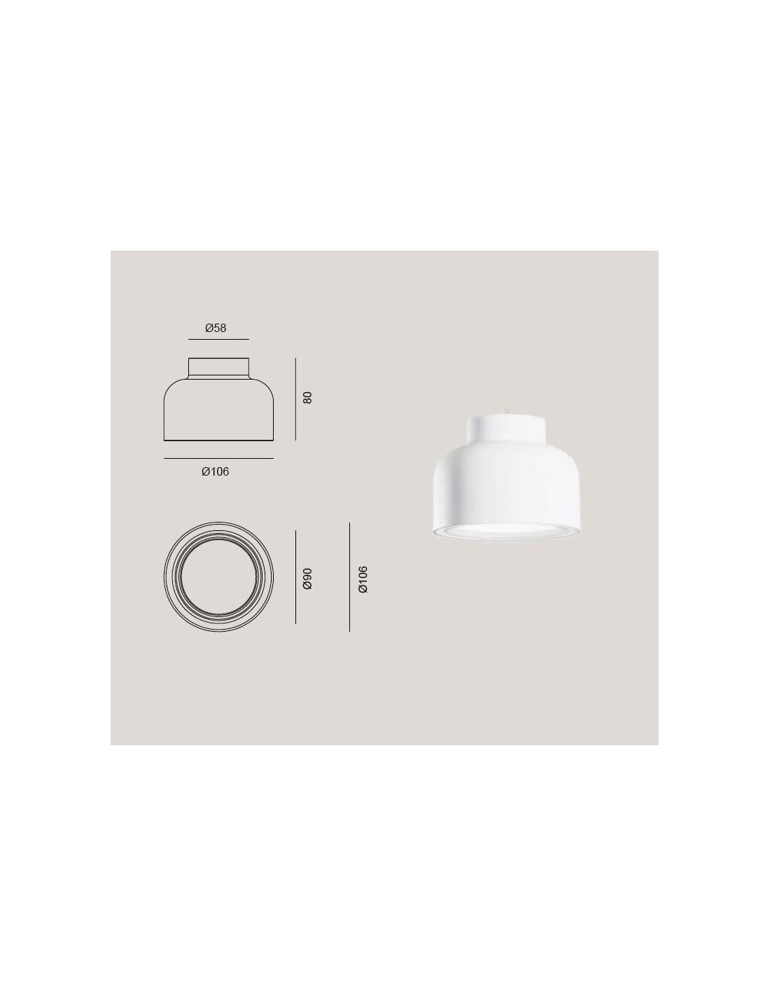 Dotate di corpo in alluminio, le lampade sono disponibili in sette varianti colore: bianco, nero, sabbia, bronzo, titanio, magenta e petrolio. Sorgente luminosa: GX53 LED, non inclusa.