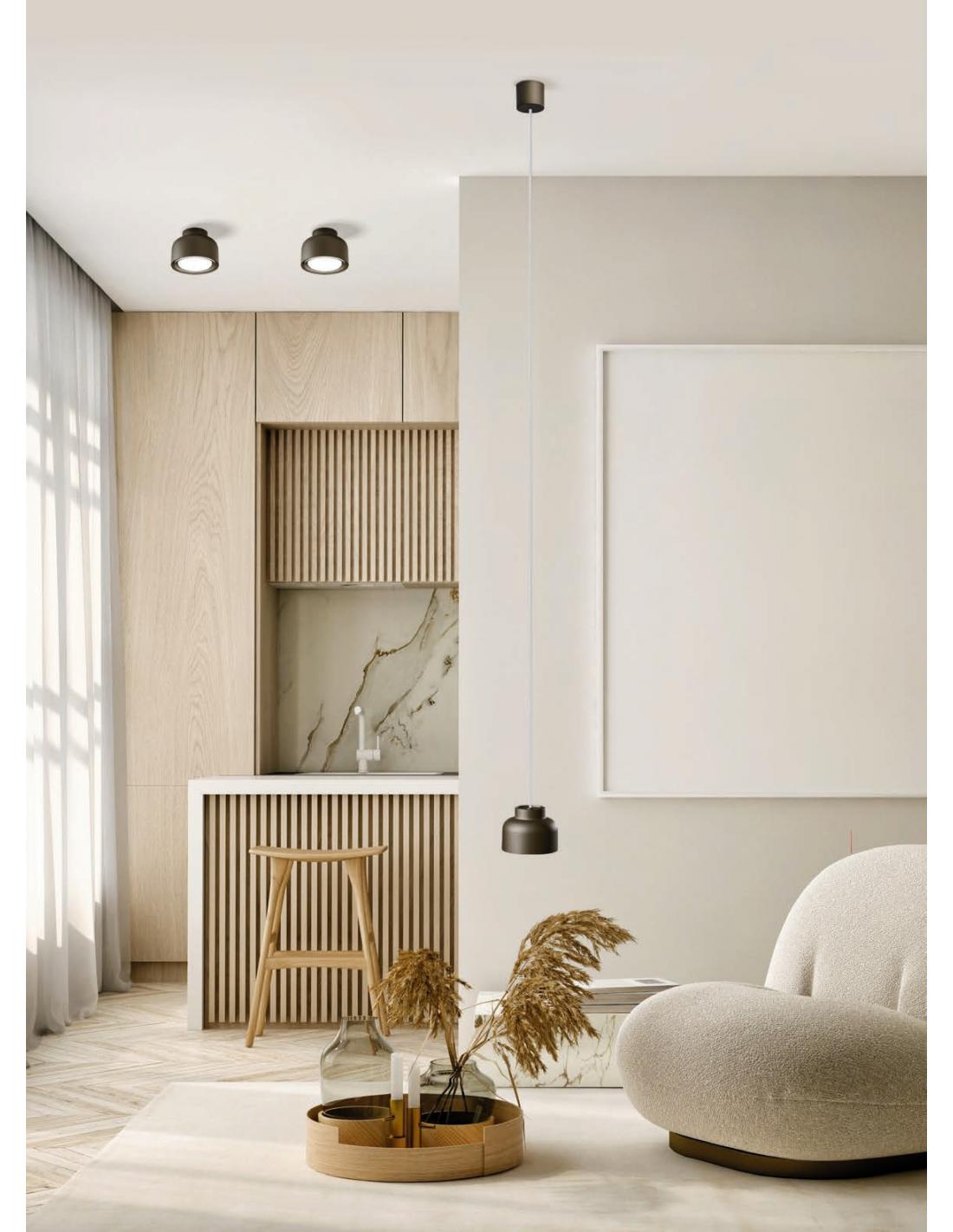Dotate di corpo in alluminio, le lampade sono disponibili in sette varianti colore: bianco, nero, sabbia, bronzo, titanio, magenta e petrolio. Sorgente luminosa: GX53 LED, non inclusa.