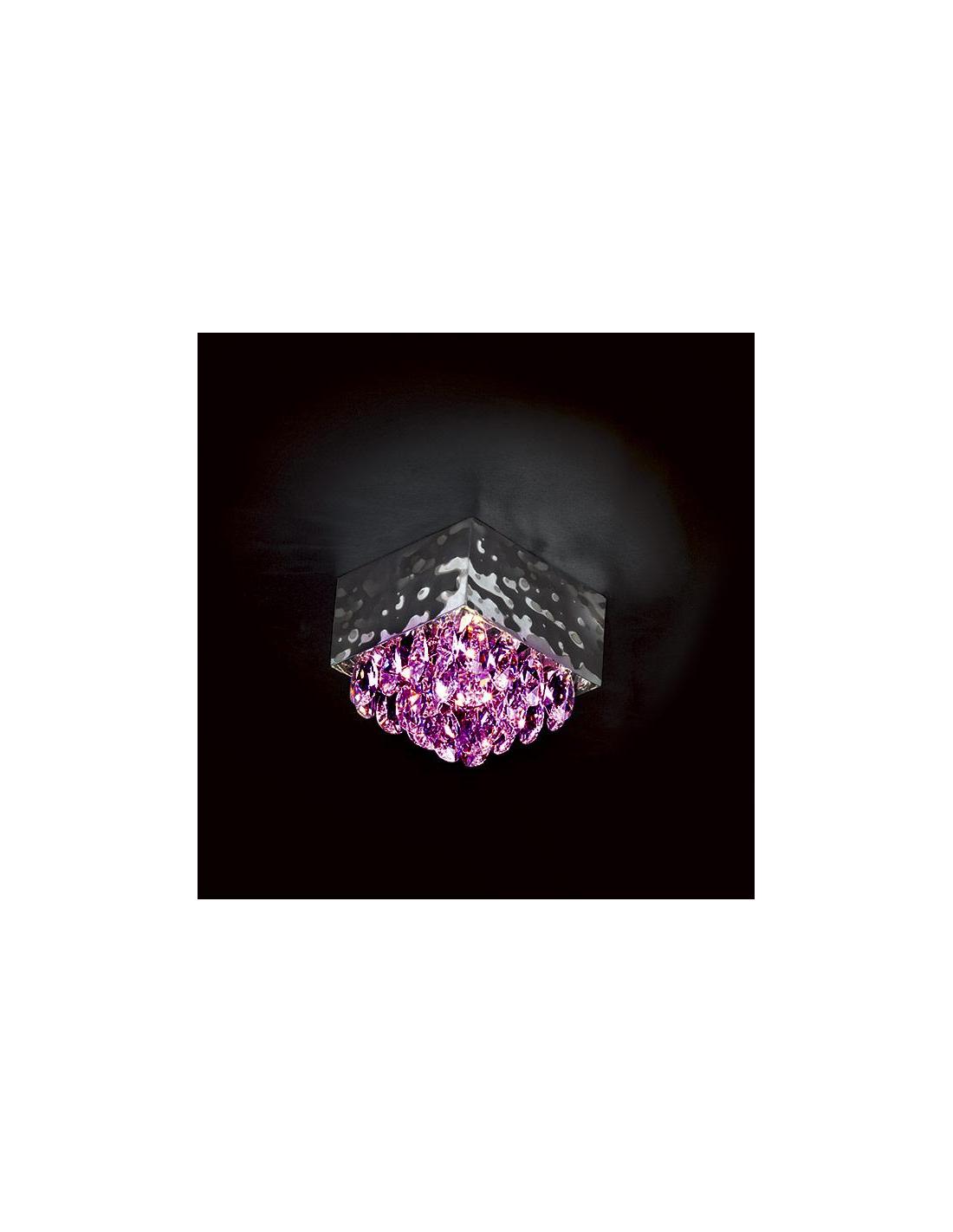 Piantana Magma By Lamp di Patrizia Volpato. Struttura bocciardata in cromo. Corpo con pendagli in cristallo trasparenti molati a mano. Particolari satinati. Portalampada 6xG9, 6x75W max, Altezza 1740 mm, Larghezza 570 mm x 260 mm. Colore cristalli ambra.