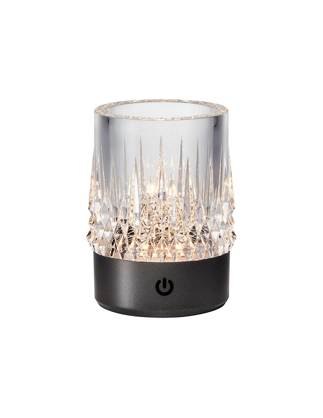 Lampada da tavolo LED 1W 3000K ricaricabile USB, effetto cristallo in policarbonato. Touch e dimmerabile, unisce eleganza e praticità per creare un’atmosfera calda e raffinata ovunque.