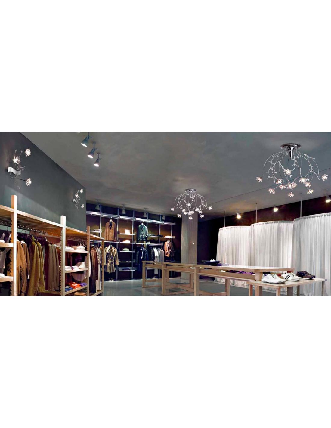 Lampada da soffitto Boccioli By Lamp di Patrizia Volpato. Portalampada 6xG9, 6x75W. Larghezza 114cm Lunghezza 60cm Altezza 18cm. Colore Cromo.