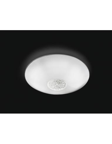 Plafoniera in vetro bianco con cristalli.