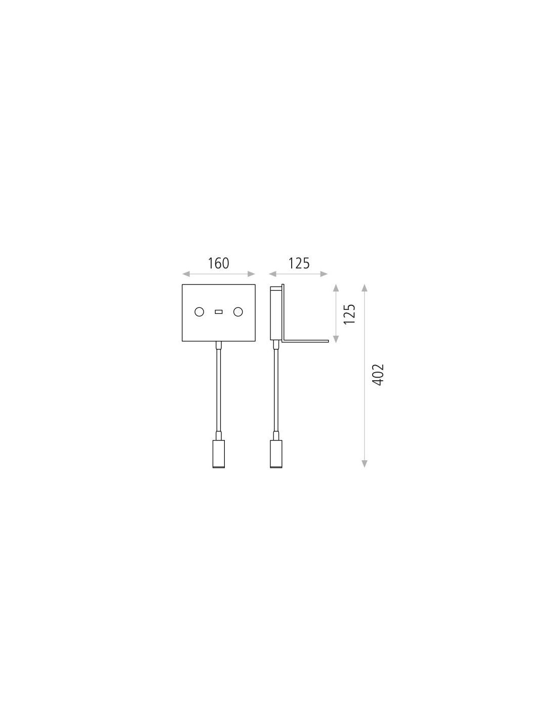 L'applique CALMA del marchio ACB presenta una struttura interamente in alluminio di colore nero testurizzato a forma di mensola con piastra rettangolare e spot con braccio flessibile. Interruttori ON/OFF integrati e separati che permettono di accendere e spegnere le due luci indipendentemente l'una dall'altra.
