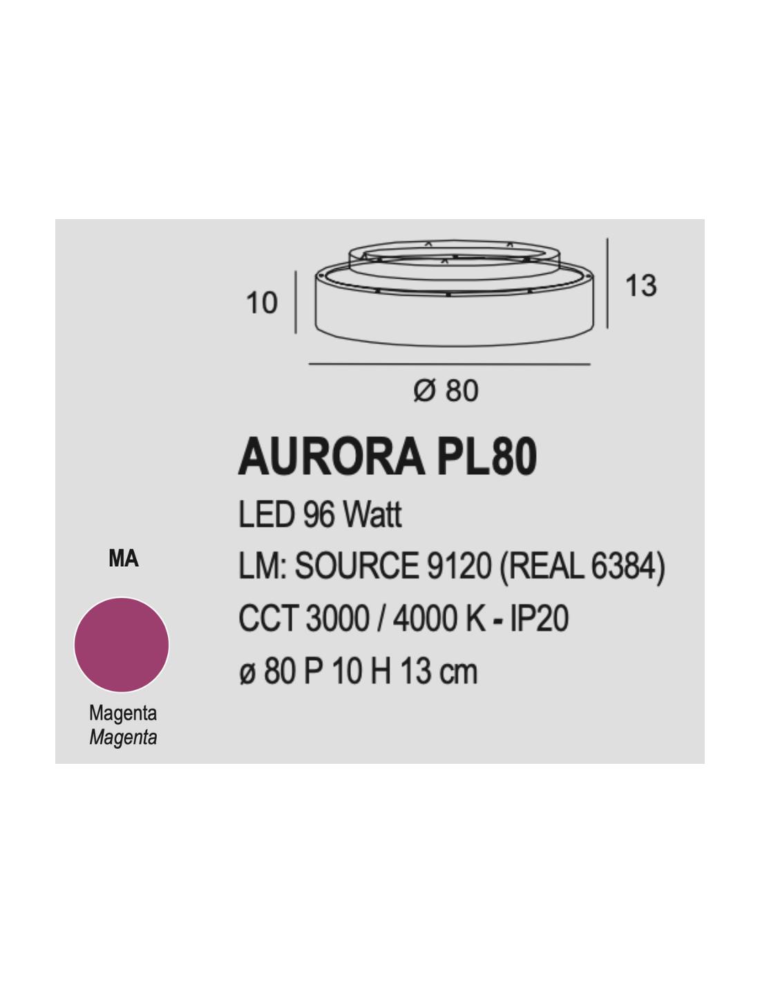 Exclusive Light Aurora PL80 MA Lampada da soffitto LED Ø80 Magenta