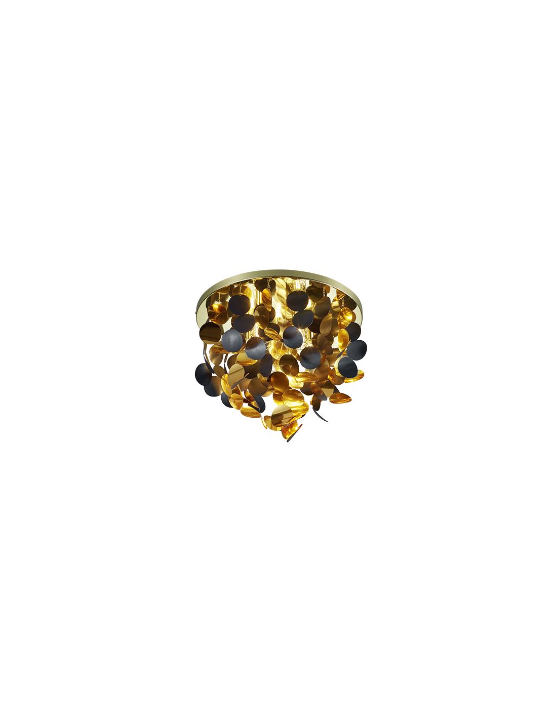 Plafonioera con struttura in metallo con dischi in metacrilato nero opaco e oro. Ø55cm