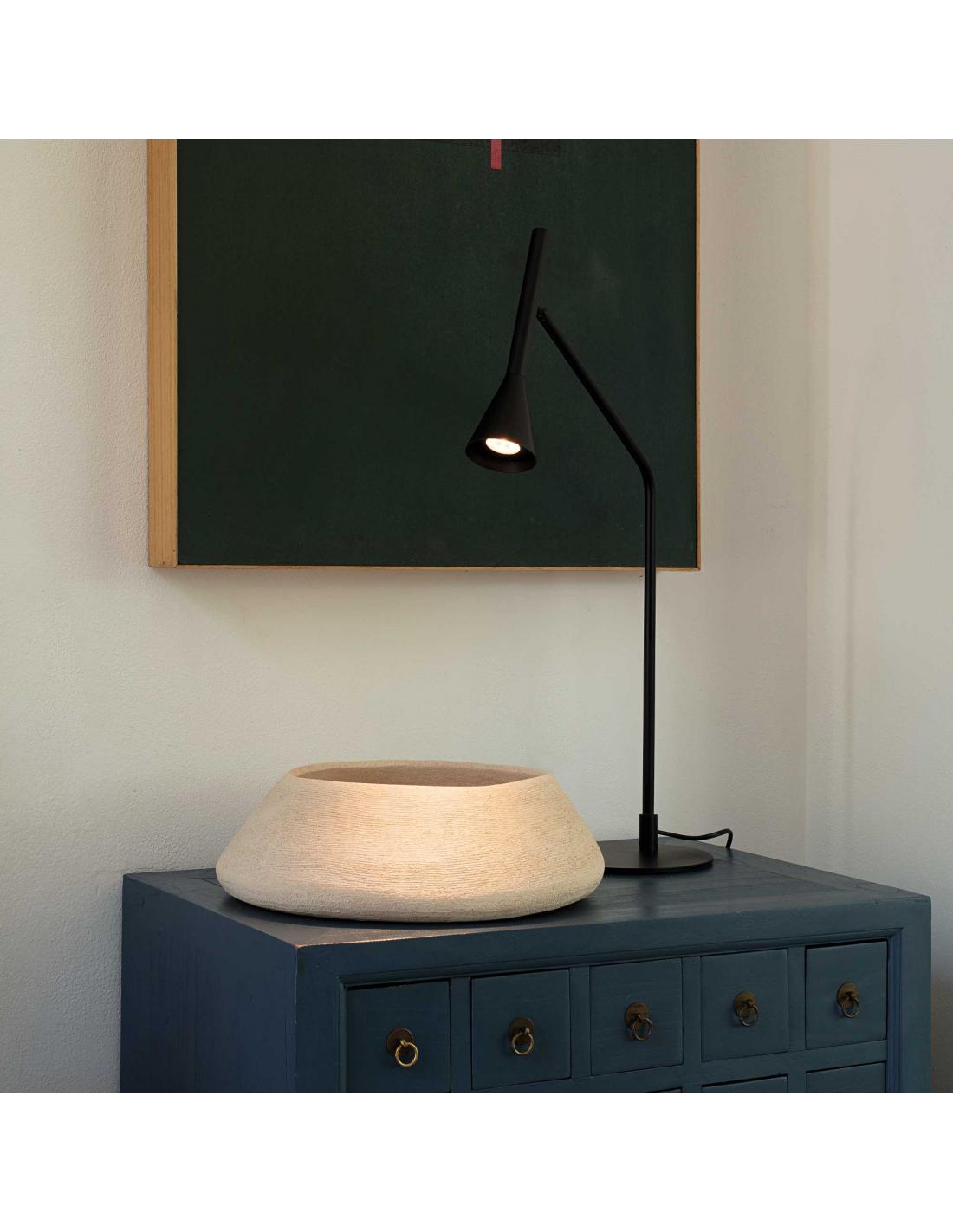 Lampada da tavolo della collezione Diesis, con Montatura in metallo verniciato a polveri o placcato. Diffusore orientabile in rotazione e inclinazione. Cavo in pvc con interruttore.